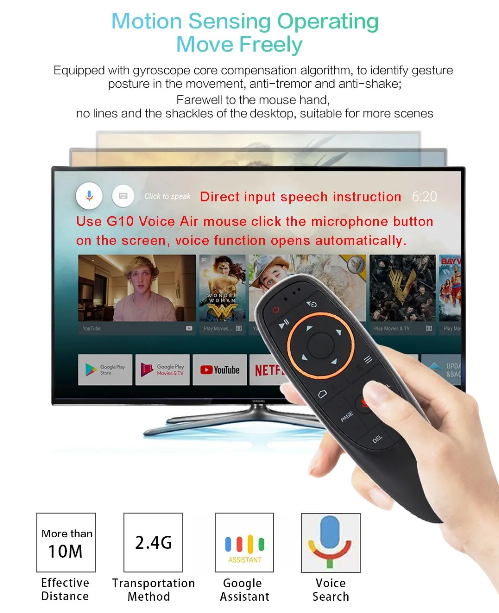 G10 голосового Air Мышь 2,4 ГГц Беспроводной голосовой пульт дистанционного управления Управление ИК-обучения 6-осевой гироскоп Google Voice Search для Android ТВ коробка ПК