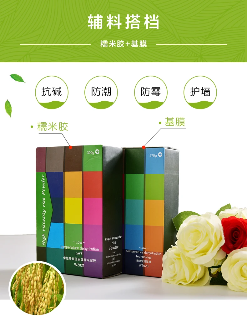 B, адгезия на 50% выше, чем традиционный резиновый порошок, и плавность на 30% выше, чем клейкий рис мокрый клей.