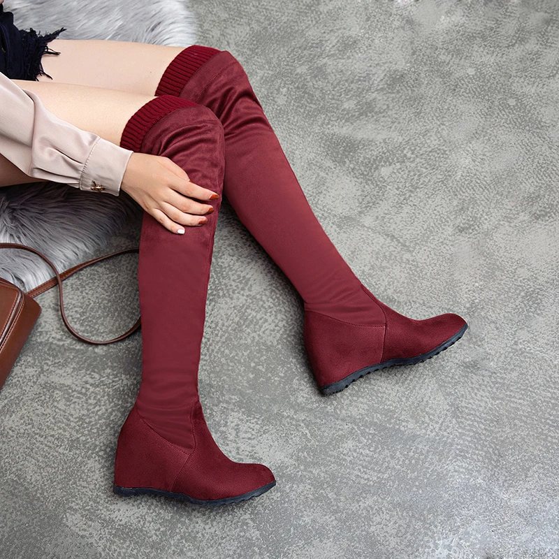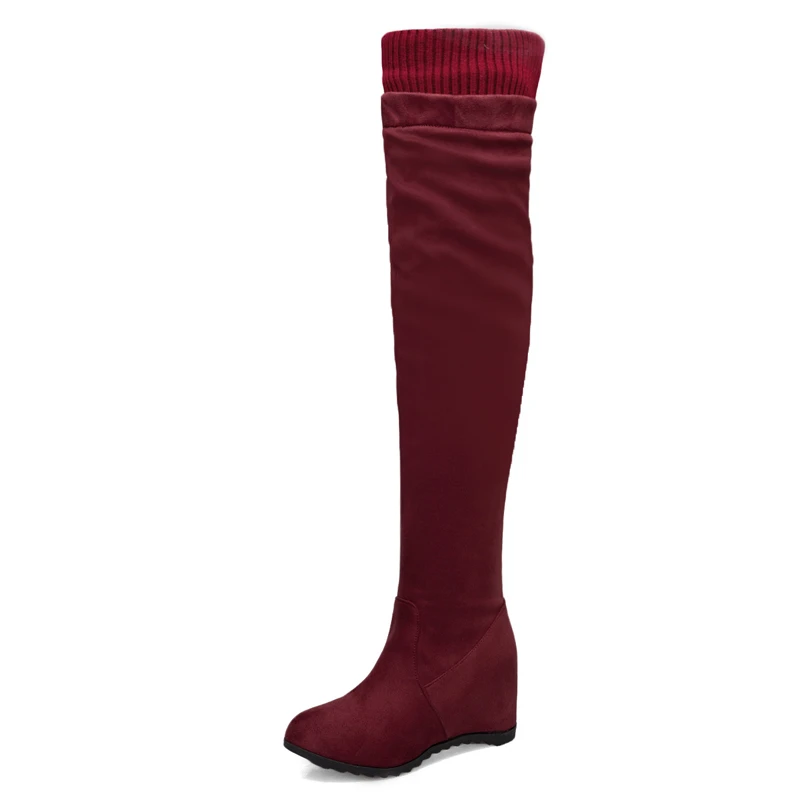 SmallHut/Высокие Сапоги выше колена, увеличивающие рост Модель: E182 (2019 SmallHut женские ботфорты выше колена) Цвет: черный/бордовый Размер: 34,35, 36,37, 38,39, 40,41, 42,43 Сезон: Зима/Осень Внутренний материал: эластичная ткань Покрытый каблук Материал: распылительная краска Материал подошвы: Резина Высота каблука: 6 см Ширина передней части: 7,5 см (Размер: 36) Модный элемент: круглый носок/квадратный каблук Пожалуйста, убедитесь, что вы оставили нам свое полное имя для доставки, так как российские клиенты требуют.
