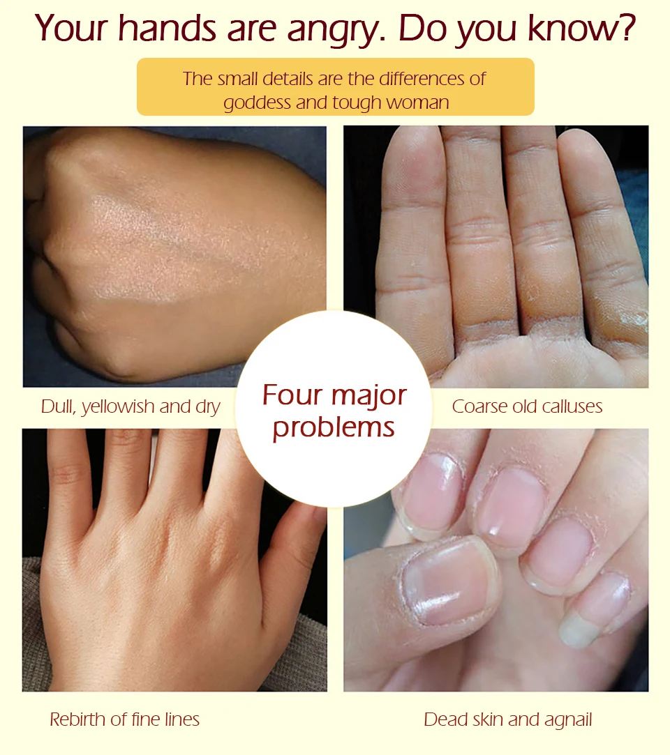 Peel off and present soft, tender and white skin Leave away the housewife hand ☑Moisturize, tender and smooth skin ☑Translucent, watery and nourishing ☑Beautify and care hands ☑Relieve agnail