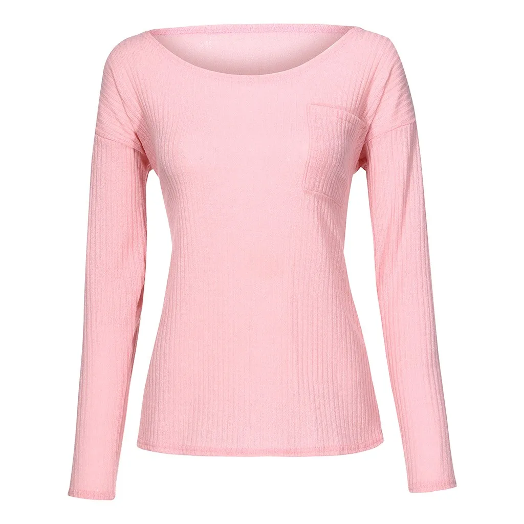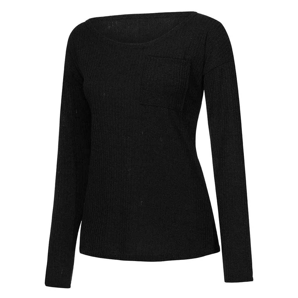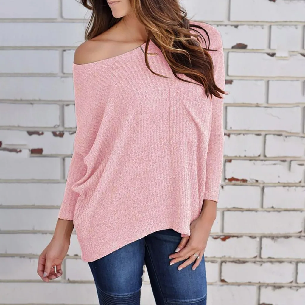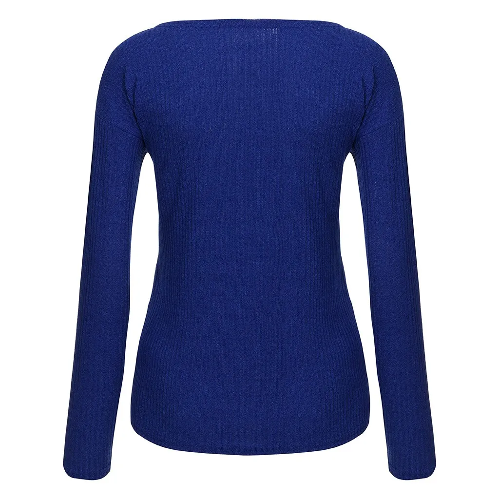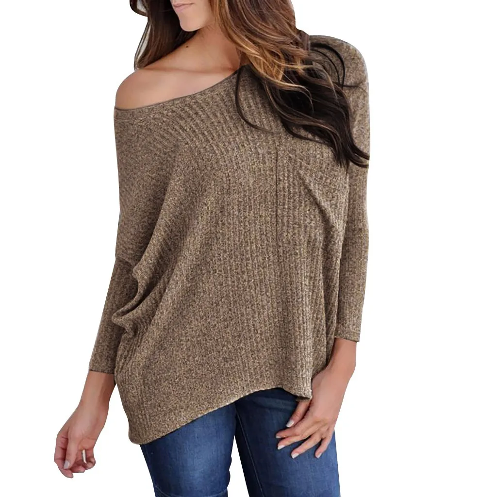 Fashion Women Sweater Solid Color Leaky Shoulder Knitting Long Sleeve Tops