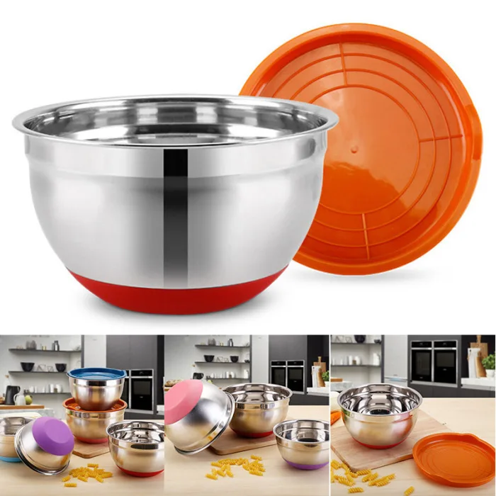 Миска из нержавеющей стали с уплотнительной крышкой без магнитного уплотнения силиконового дна салатный горшок для выпечки яиц кухонная утварь UYT