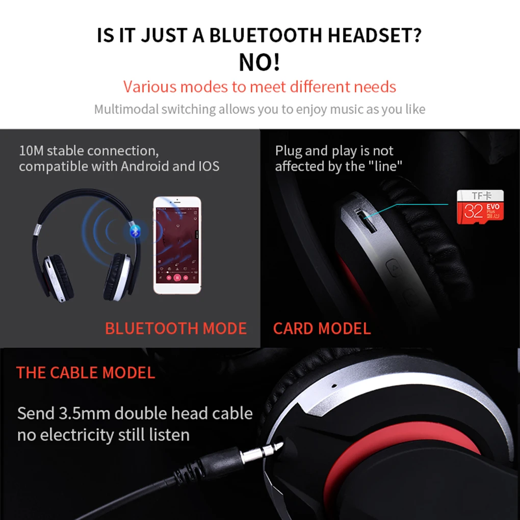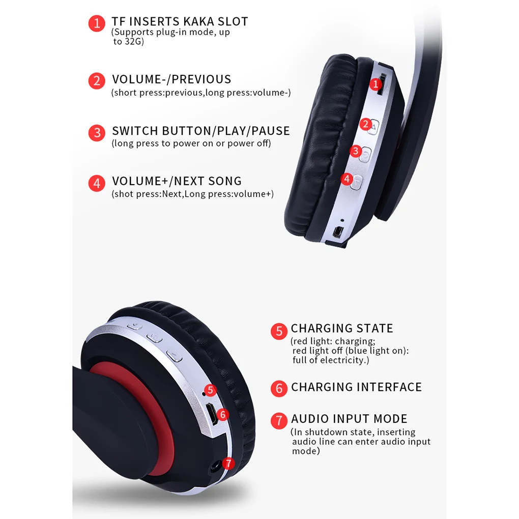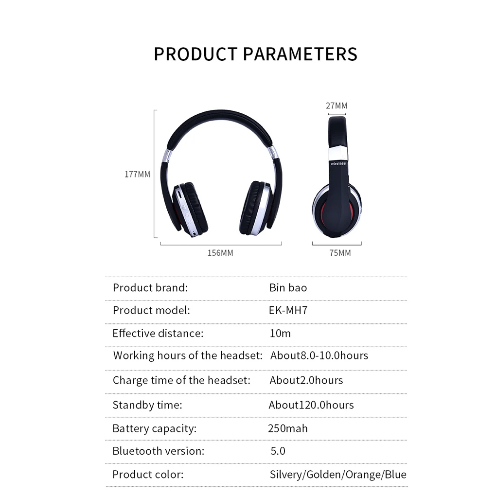 MH7 Over Ear Wireless Headphone Noise Cancelling Bluetooth 5.0 Folding Earphone Foldable Stereo Gaming Headset