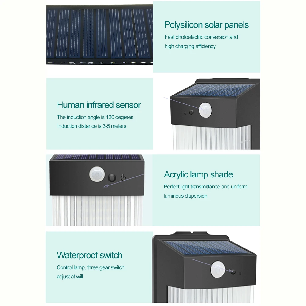 Солнечный заряд в течение дня, автоматически загорается, когда он становится темным и автоматически гаснет, когда он получает свет.