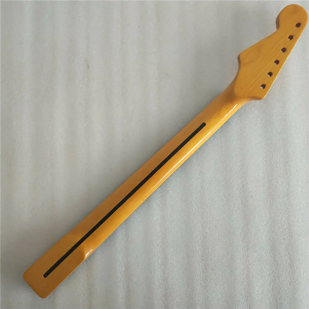 Лучший Винтаж Гитара шеи для ST Замена 21 лада клен гриф из розового дерева желтый Глянец Готовые с жемчужинками, инкрустация 。 шкала длины 25,5 ''648mm тюнеры отверстие: 8 мм Ширина каблука: 55,5-56,5 мм. Ширина гайки: 42 мм. Регулировка стержня ферменной конструкции: каблук (стержень ферменной конструкции уже установлен) Наша фабрика может быть изготовлена в соответствии с вашими потребностями.