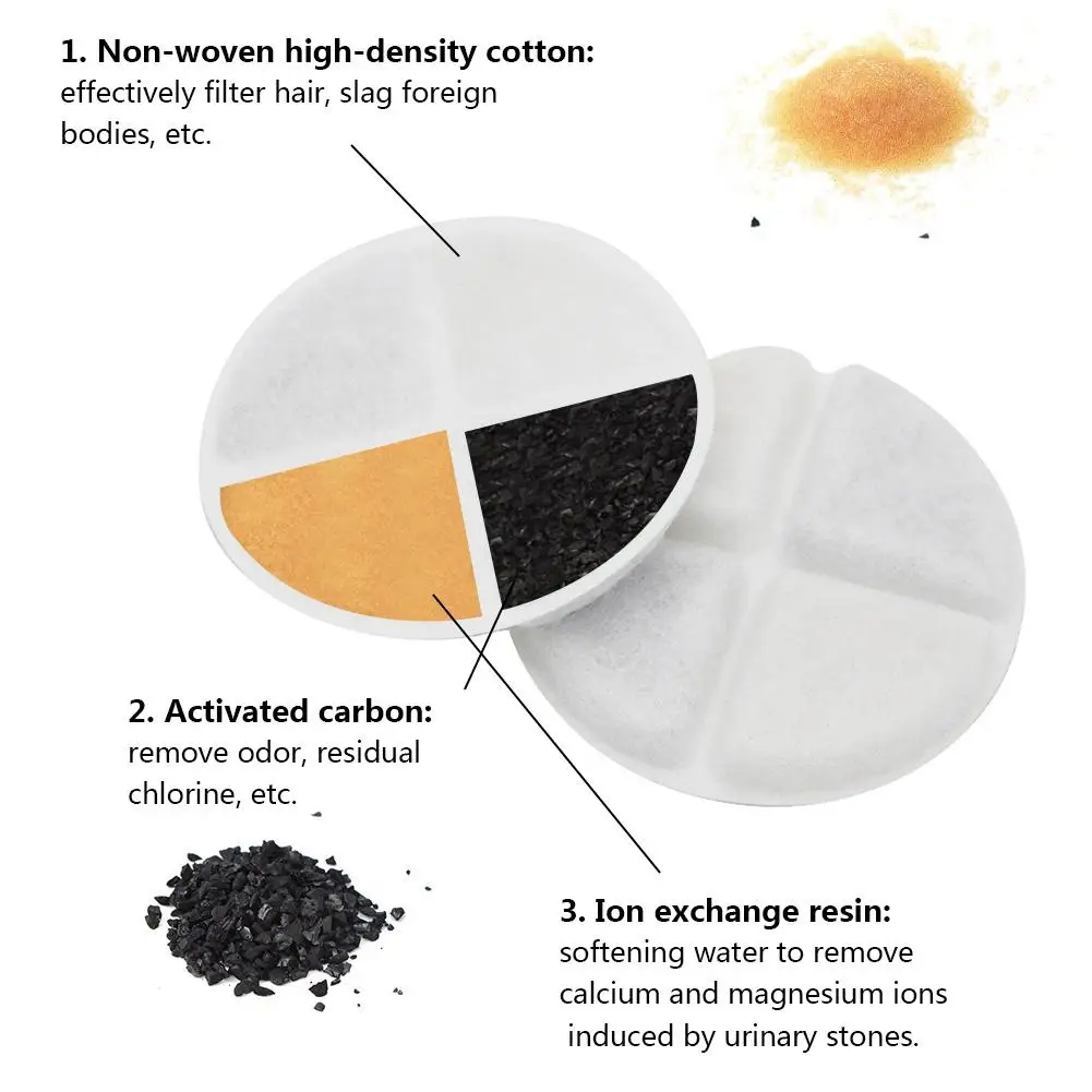1. Улучшенный 3D фильтр: новый усовершенствованный 3D фильтр с использованием гранул из активированного угля в скорлупе кокосового ореха и импортной ионообменной смолы, многократная фильтрация и очистка, эффективное поддержание качества воды, увеличение содержания кислорода, И обеспечить здоровье домашних животных.2 * питьевой фонтан для кошек 4/6/8