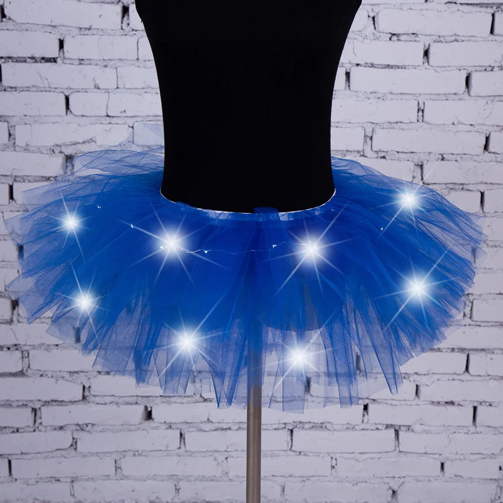 Для женщин 5 слоев сетки Тюлевая юбка принцессы со светодиодной небольшой bulbskirt