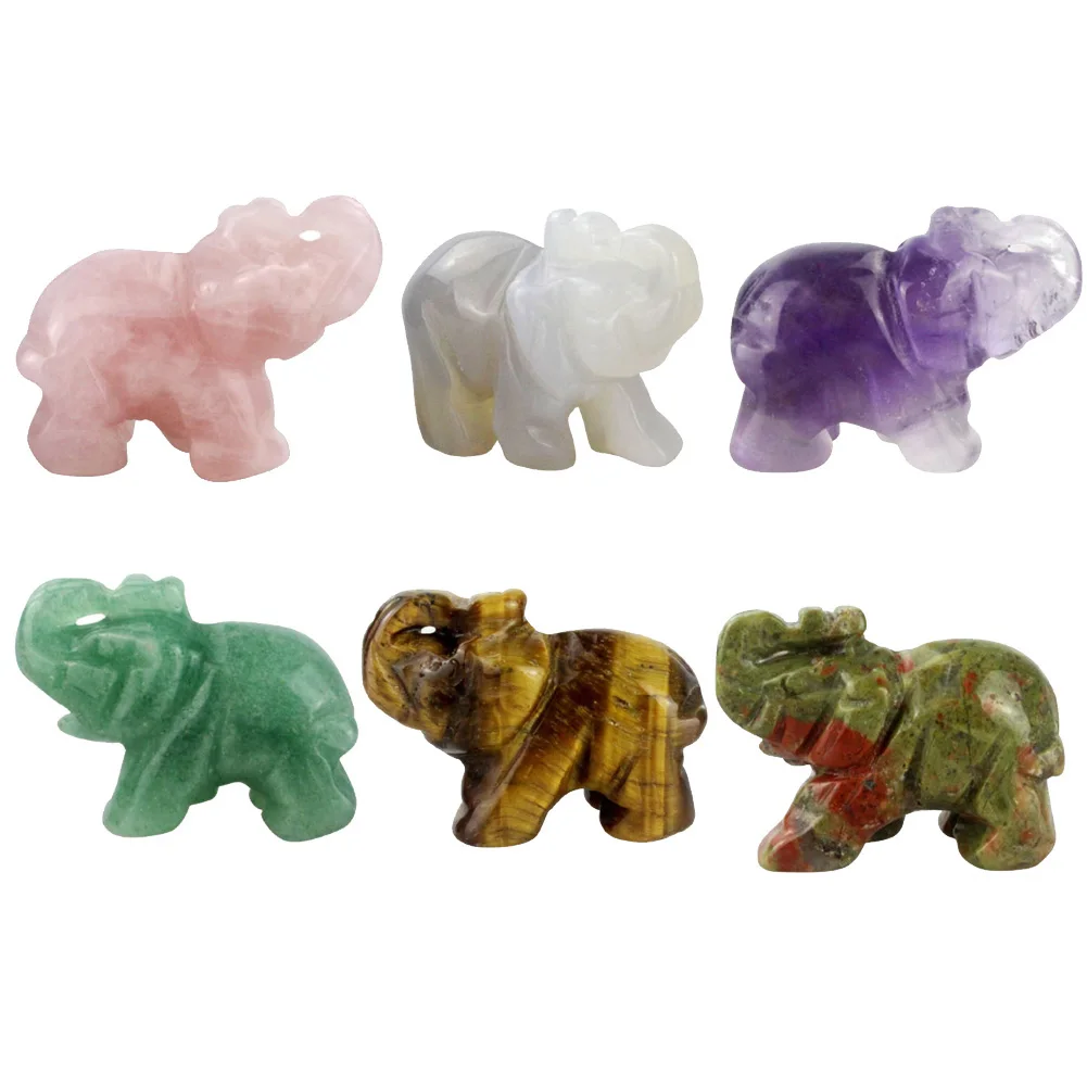 1,5 дюймов натуральный драгоценный камень кварцевые статуэтка слона статуя Ремесло Декор для домашнего стола