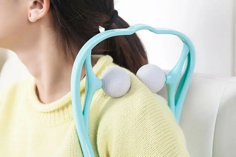 ❤Имитирует руки настоящего терапевта❤Массажер для шеи оснащен двумя мягкими, но прочными силиконовыми мячиками, похожими на гольф, которые предназначены для того, чтобы чувствовать себя как руки массажера. Гладко раскатывающиеся шарики в шее и плечах глубоко проникают в мышцы для мгновенного облегчения узлов и тугих ахронных мышц.❤