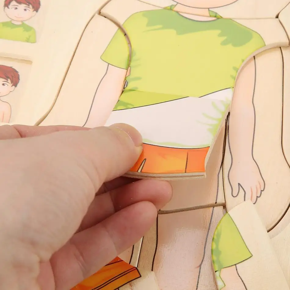 Наши кирпичные игрушки изготовлены из дерева, и они безопасны и не токсичны. Он может развить способность ребенка распознавать цвет и структуру человеческого тела. Игрушка разработана с гладкой и мягкой поверхностью, и она не поцарапает руки ребенка.