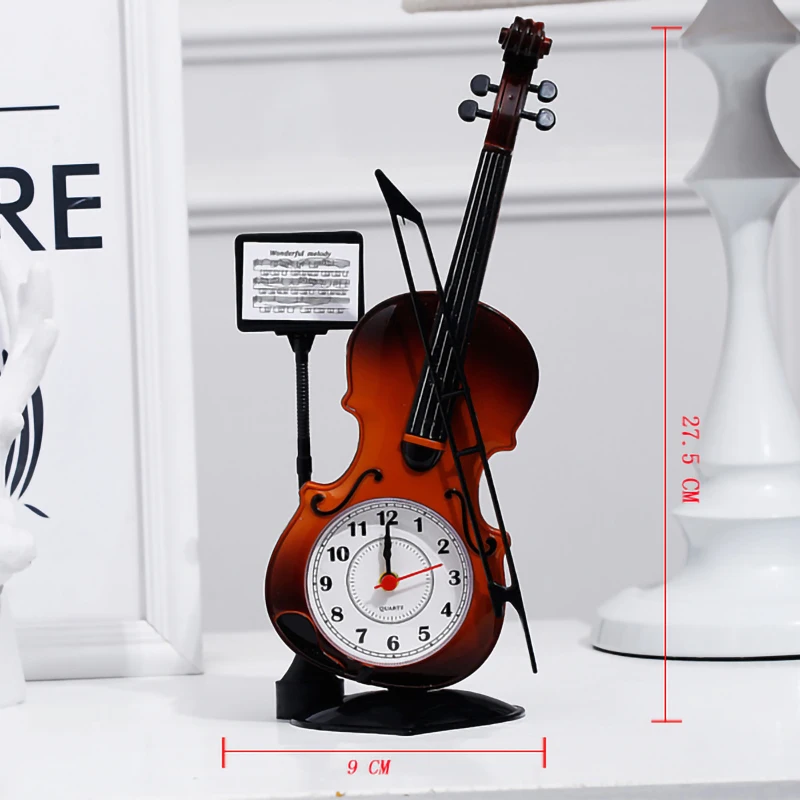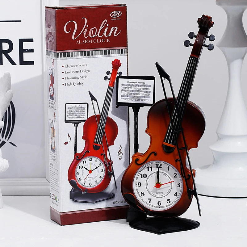 Simulation Cello Ancient Desk Clock Vintage clock Unique Alarm Clock Office Supplies Home Decor Handmade Crafts Children Gifts