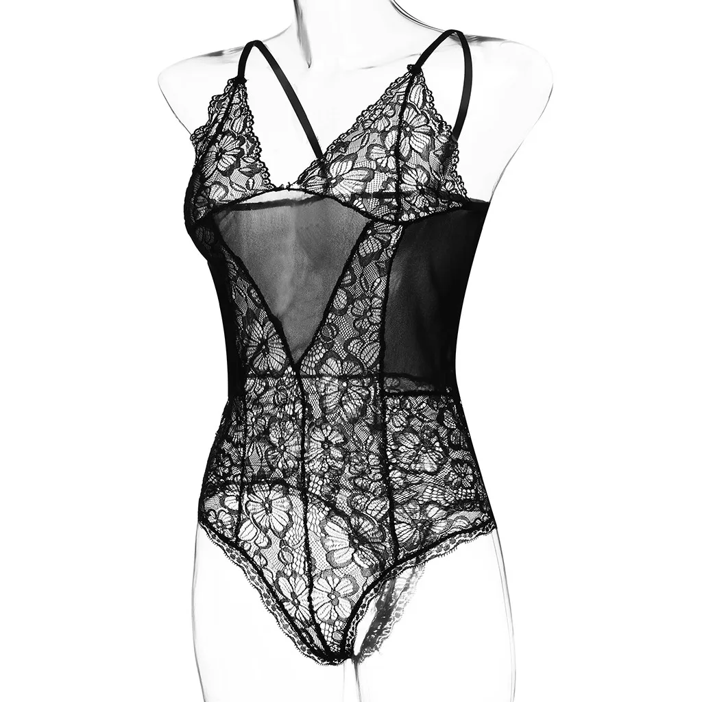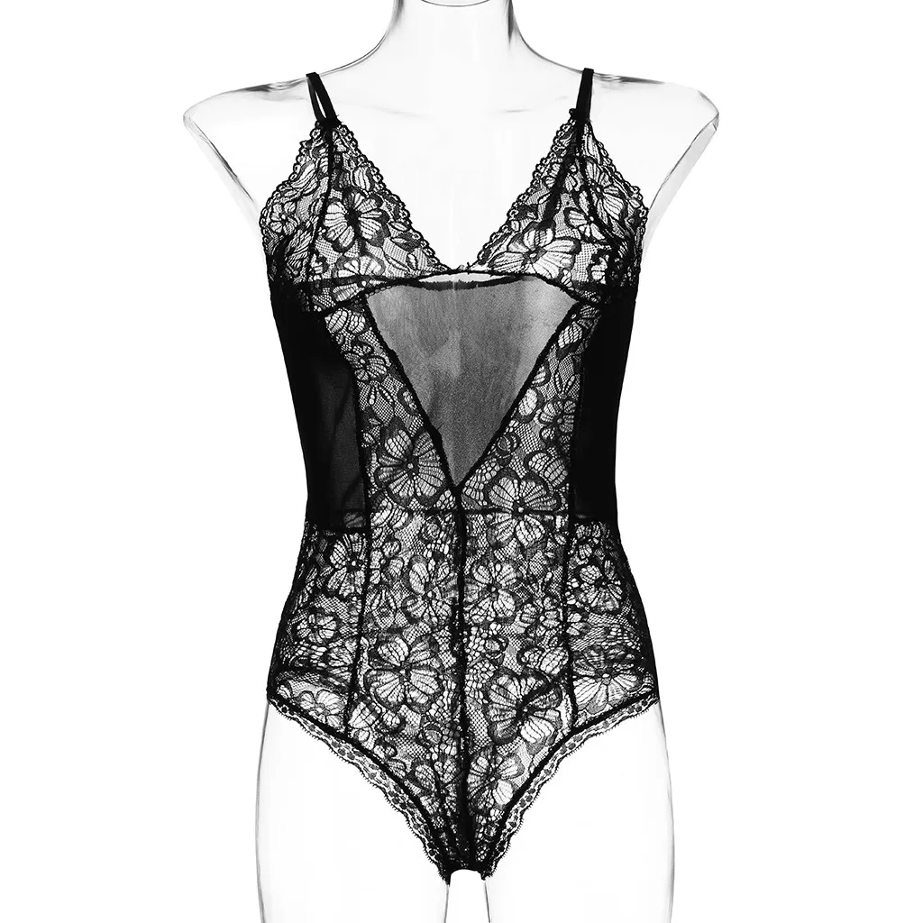 Горячая Распродажа, сетчатый кружевной комбинезон, женский боди, прозрачный сексуальный комбинезон с длинным рукавом, 2018, бюстгальтер, боди, сексуальный женский костюм, ночная сорочка, глубокий v-образный вырез, открытая спина, Холтер, нижнее белье, прозрачная сетка, Прозрачный цветочный кружевной комбинезон, мини-боди