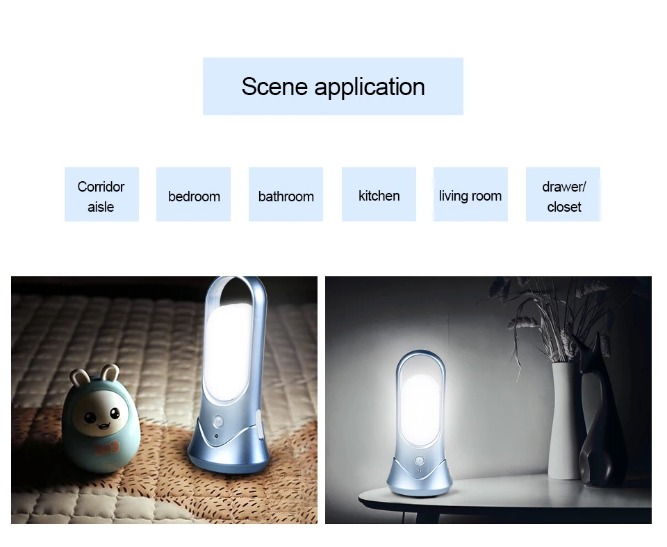 Параметры: Название: Портативный Ночной светильник Мощность: 1,4 W Напряжение: 5 в пост. Тока Емкость аккумулятора: литиевая батарея 800 мАч Зарядка: USB зарядка Время зарядки: 4-6 часов Цвет корпуса: синий Три режима работы: Always on ночной Светильник режим/автоматический индукционный ночной Светильник режим/Портативный вспышка светильник режим Особенности: -Многофункциональные 3 режима работы: 1. Всегда в режиме ночной Светильник: мягкий светильник не светится. 2. Автоматический индукционный Ночной светильник: индукция человеческого тела + светильник, сенсорная технология, когда человек находится в пределах 1-3 м, светильник включается 3. Портативный вспышка светильник режим: нажмите боковую кнопку, чтобы включить светодиоднyю подсветку с флэш-светильник режим, легко переключать, маленький и светильник -Дизайн магнитной адсорбции: с магнитом, его легко прикрепить к железным изделиям, свободные руки -Тип зарядки USB: оснащенный стандартным зарядным интерфейсом, зарядка в нормальных условиях в течение двух часов, около 60 дней в автоматическом режиме (10 раз за ночь) Посылка включает в себя: 1 * Портативный Ночной светильник 1 * USB кабель 1 * Руководство пользователя
