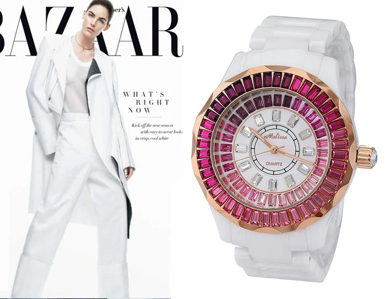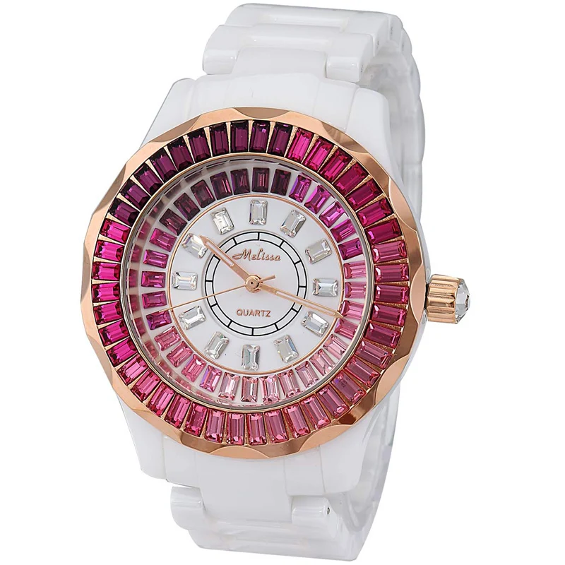 Часы сделаны с японским кварцевым механизмом Miyota и сапфировым окном, кристаллом Swarovski (высокое качество на Aliexpress) Посылка включает: часы + коробка MELISSA + подарок бесплатно 3 года гарантии Все фотографии этого товара являются реальными фотографиями. Не фотошоп.