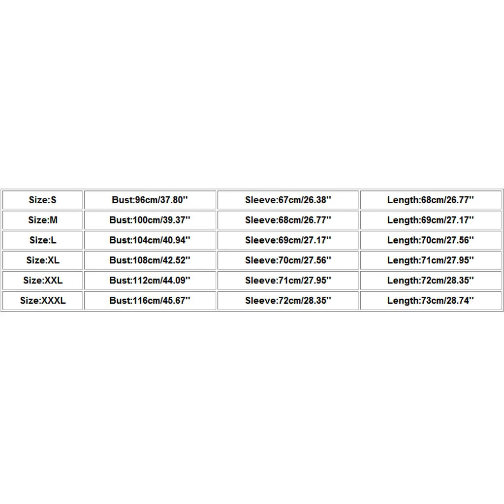Размер Обхват груди Рукава Длина S 96 см/37,80'' 67 см/26,38'' 68 см/26,77'' М 100 см/39,37'' 68 см/26,77'' 69 см/27,17'' L 104 см/40,94'' 69 см/27,17'' 70 см/27,56'' XL 108 см/42,52'' 70 см/27,56'' 71 см/27,95'' XXL 112 см/44,09'' 71 см/27,95'' 72 см/28,35'' XХХL 116 см/45,67'' 72 см/28,35'' 73 см/28,74''
