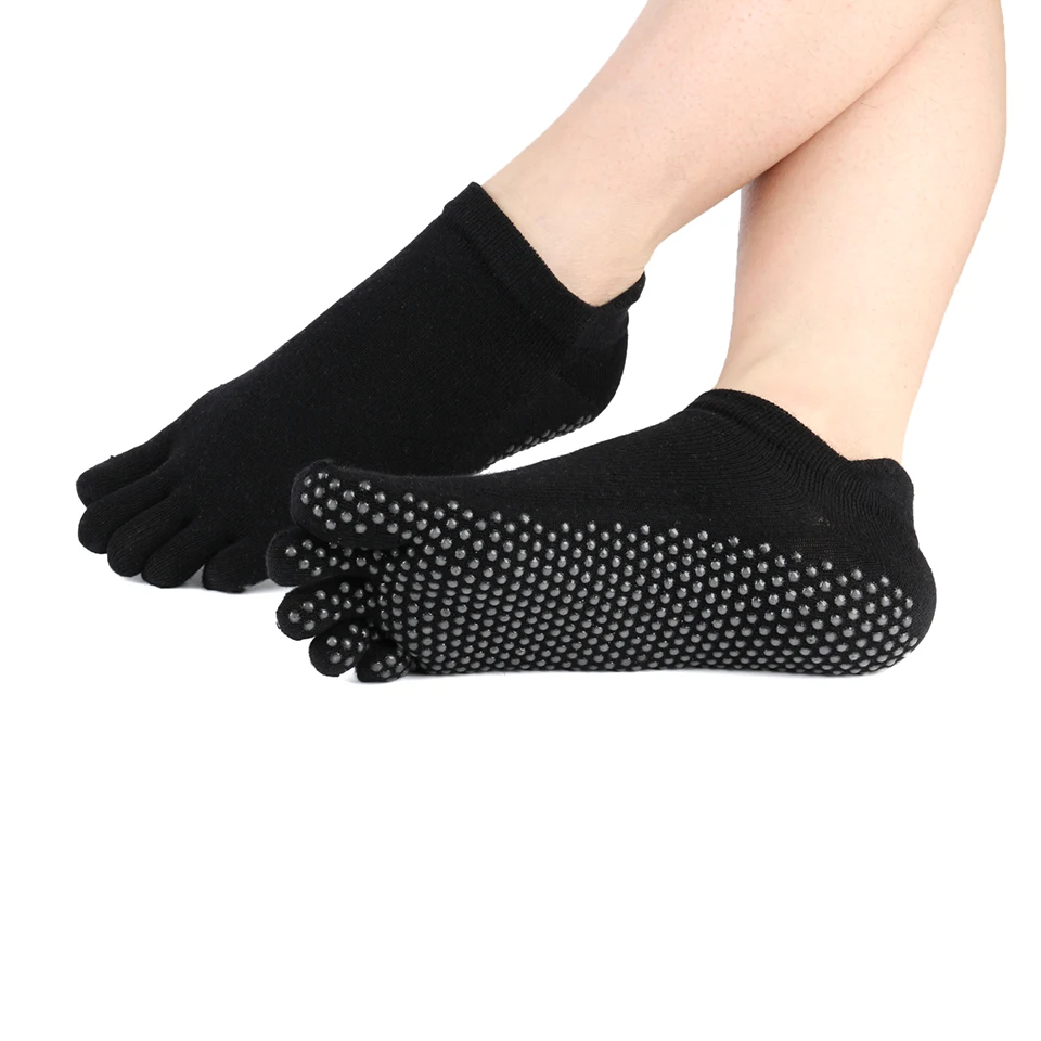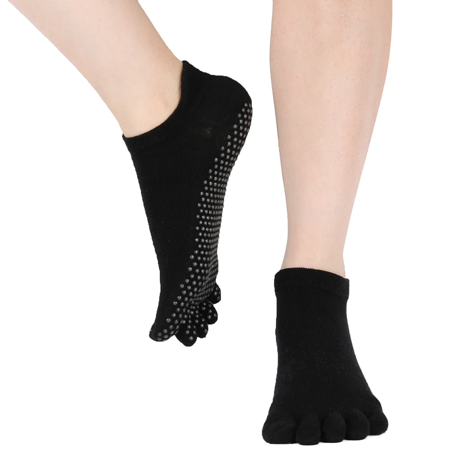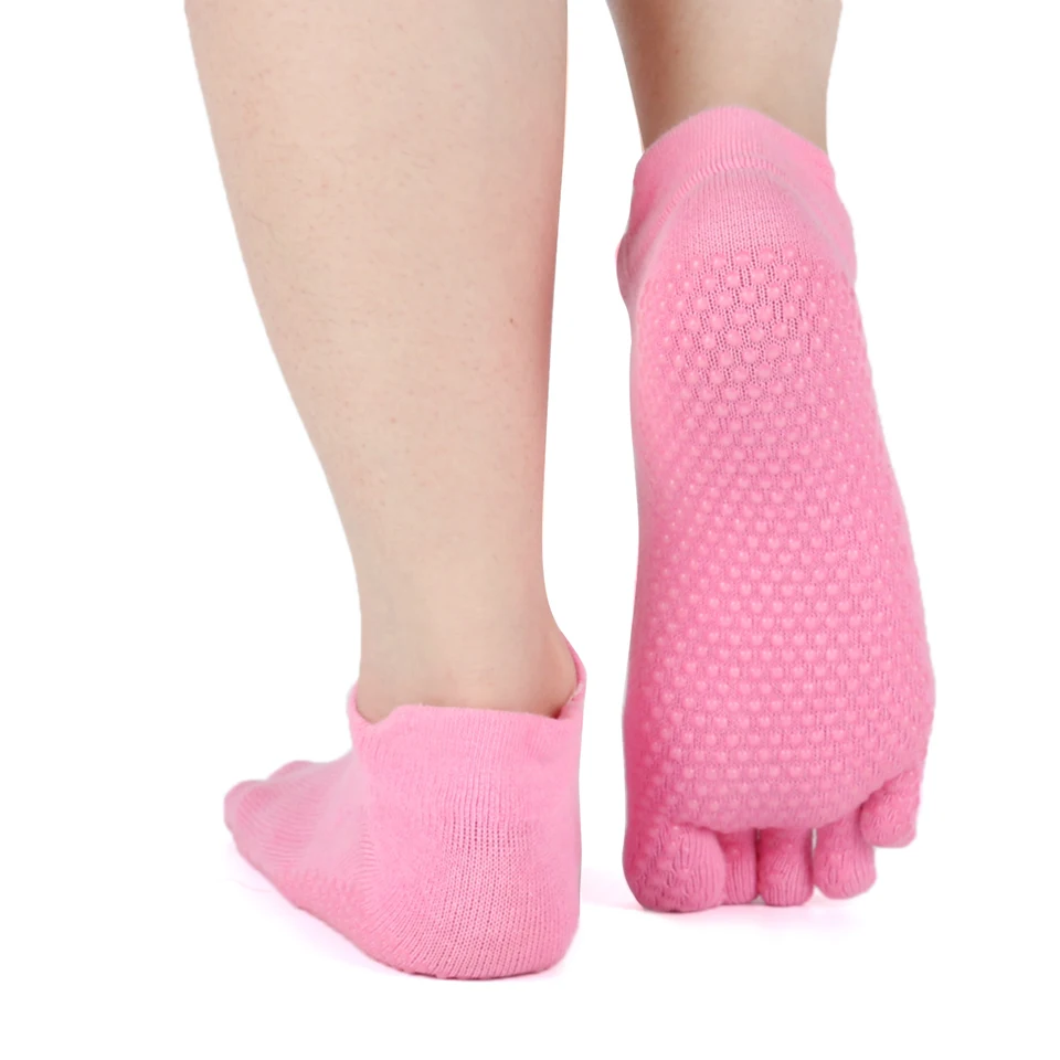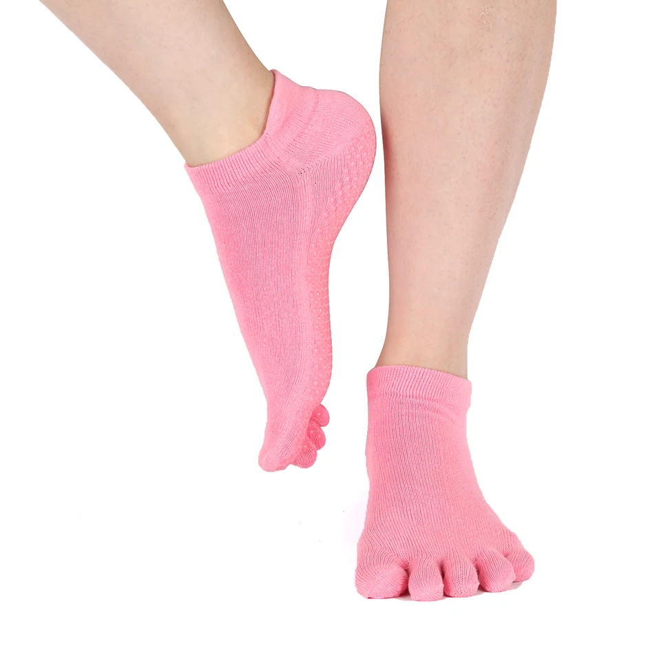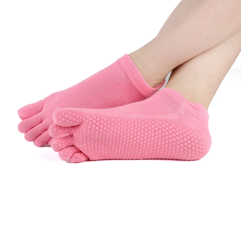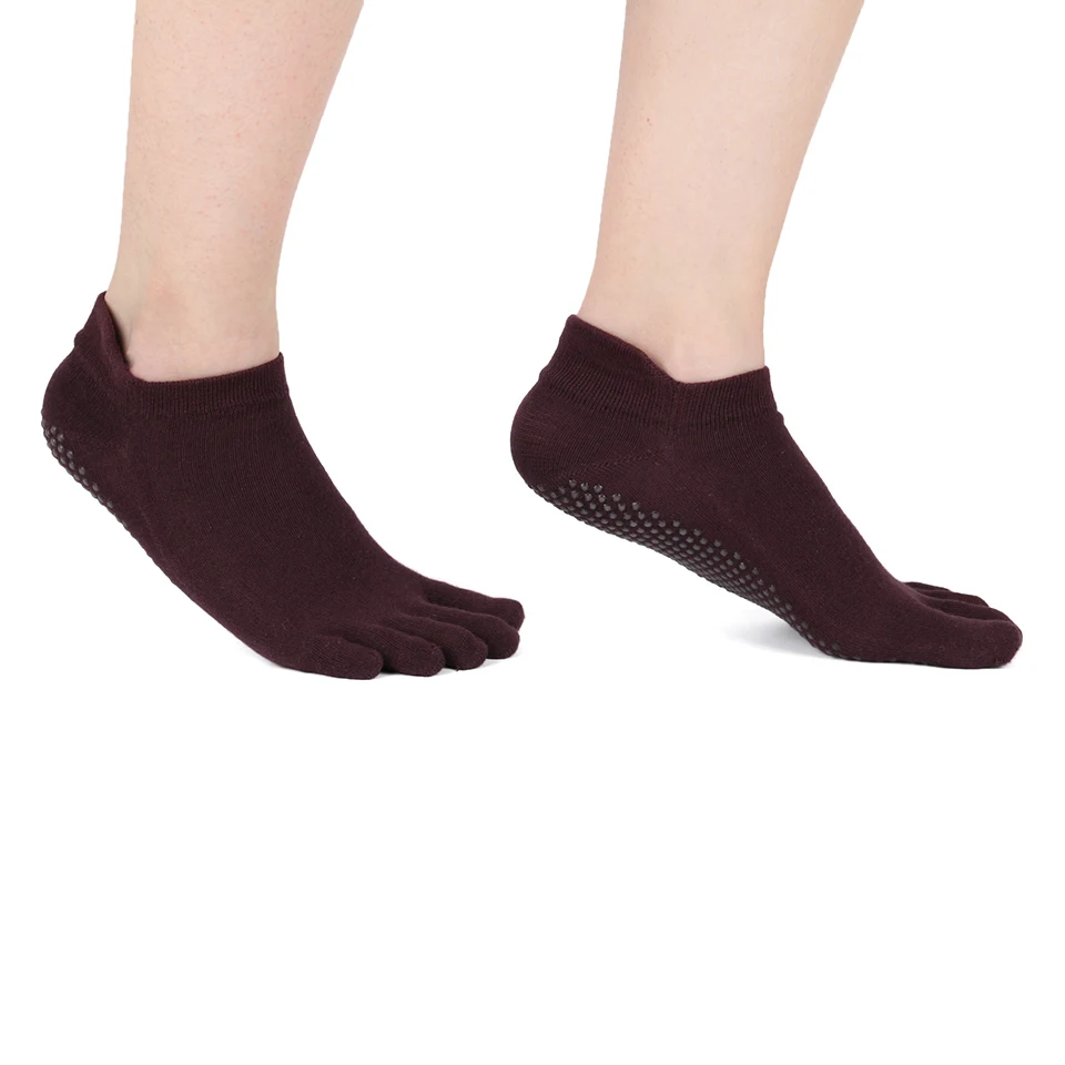 Название: теплые женские спортивные цветные носки для йоги, Горячие Носки для фитнеса и пилатеса, хлопковые носки, радужные тренировочные Нескользящие Дышащие носки с пальцами фиолетового цвета
