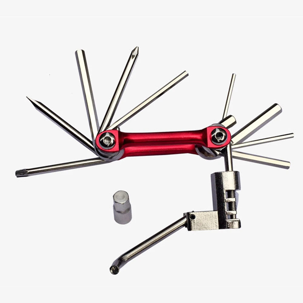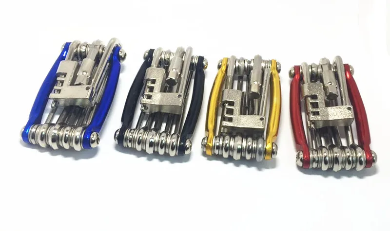 11 в 1 мини-велосипед набор инструментов Включает в себя следующее: 1: 1 цепной резак 2: T25 plum Ключ, дюймовый стандарт 1 3:2/2,5/3/4/5/6/8 мм шестигранников всего 7 4: 1 крестовая отвертка, 1 шлицевая отвертка Материал: 45 # сталь Обработка поверхности: хромирование Доступно в синем, красном и золотом цветах Этот инструмент имеет не только несколько часто используемых шестигранных ключей, но и T25. Многие винты дискового тормоза используют этот тип инструмента. Твердость инструментальной стали хорошая, небольшой размер, прост в использовании, должен быть вне! Инструменты в руке, Беззаботная езда на велосипеде! Шестигранная розетка 2, 3, 4, 5 мм Ножом Пиво отделить одну Крестообразная отвертка Вес 0,16 кг