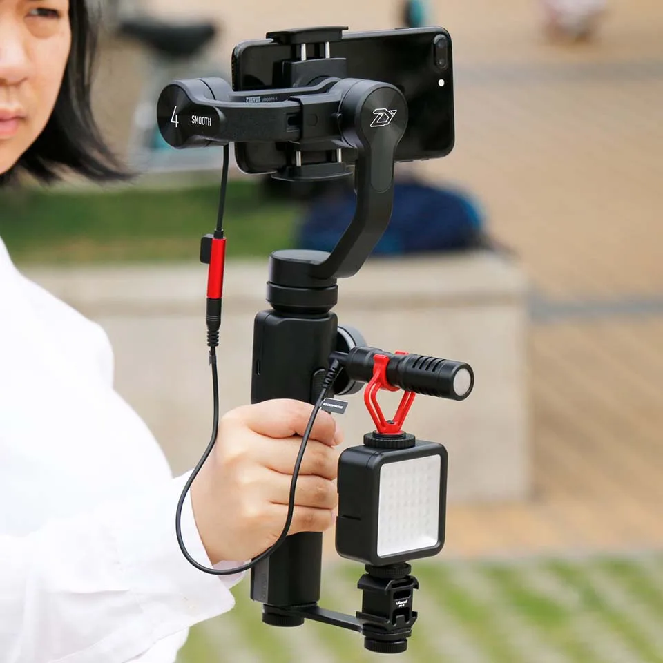 Multifunction Triple Cold Shoe Mount Plate for DJI OSMO Mobile 2 Zhiuin Smooth 4 Mircrophone/LED Video Light Extesion Bracket