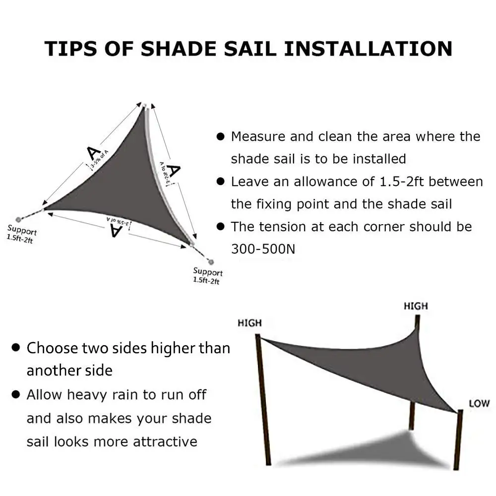 3x3m 4x4m 6x6m водонепроницаемый треугольный тент для тента, паруса, солнца на открытом воздухе, солнцезащитный тент, парус, сад, патио, бассейн, кемпинг, палатка для пикника