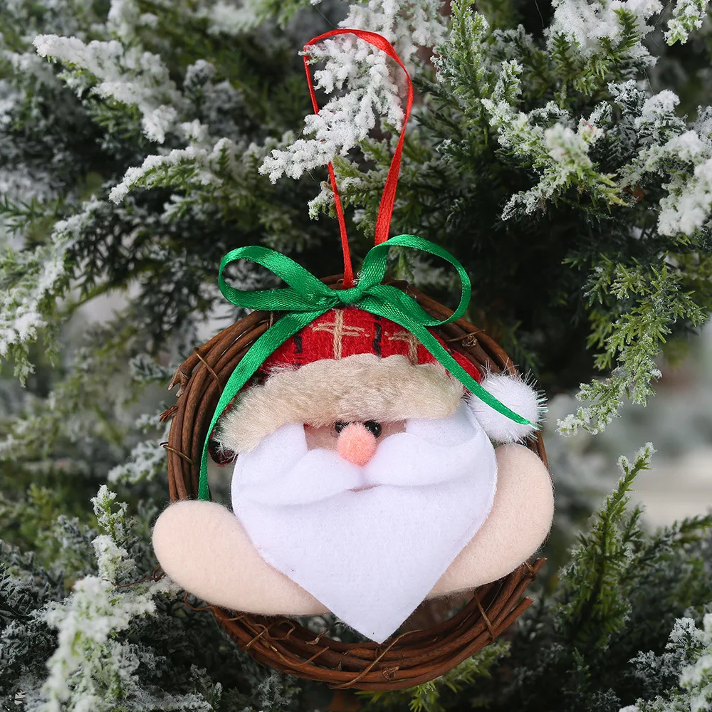 Рождественское украшение зеленое с бантом, маленькое кольцо из ротанга для куклы-подвеска, венок, висячие украшения, рождественский подарок, украшение Noel Navidad 2020