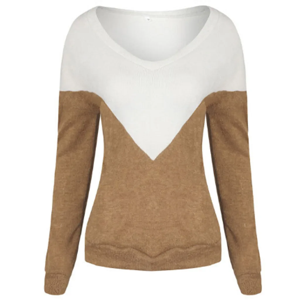 1. Особенности: Модный повседневный, v-образный вырез, блузка-свитер, цветные блоки, вязание, топы с длинными рукавами.