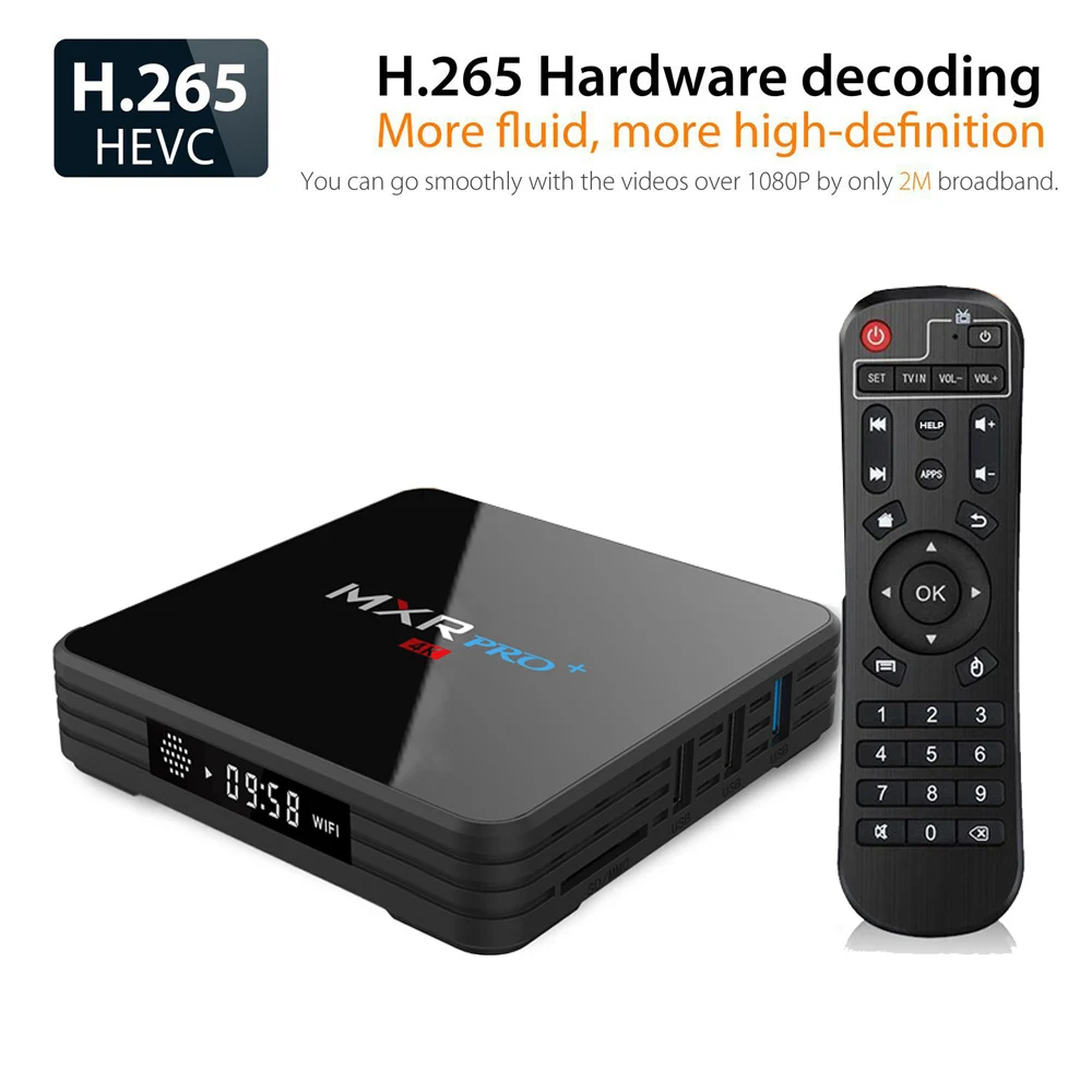 MXR PRO Plus Android 10 Smart TV BOX 4G Ram 32G Rom RK3318 четырехъядерный светодиодный дисплей 4K H265 BT4.0 2,4G/5G двойной WIFI ТВ телеприставка