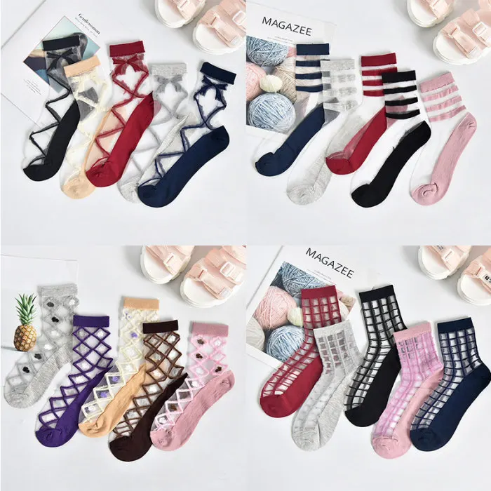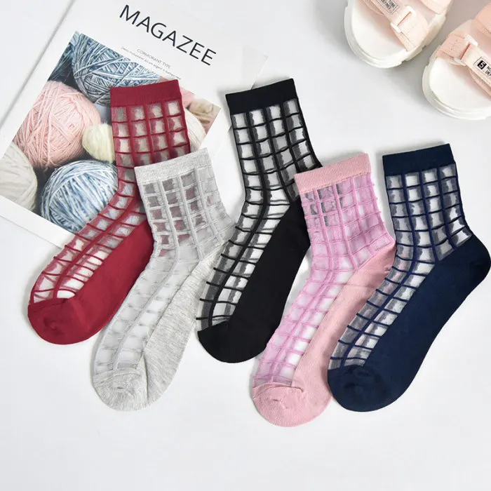 High 5 Pairs Fashion Mesh Transparent Socks for Women Comfortable Breathable Thin Fishnet See Through Ankle Sock DOG88