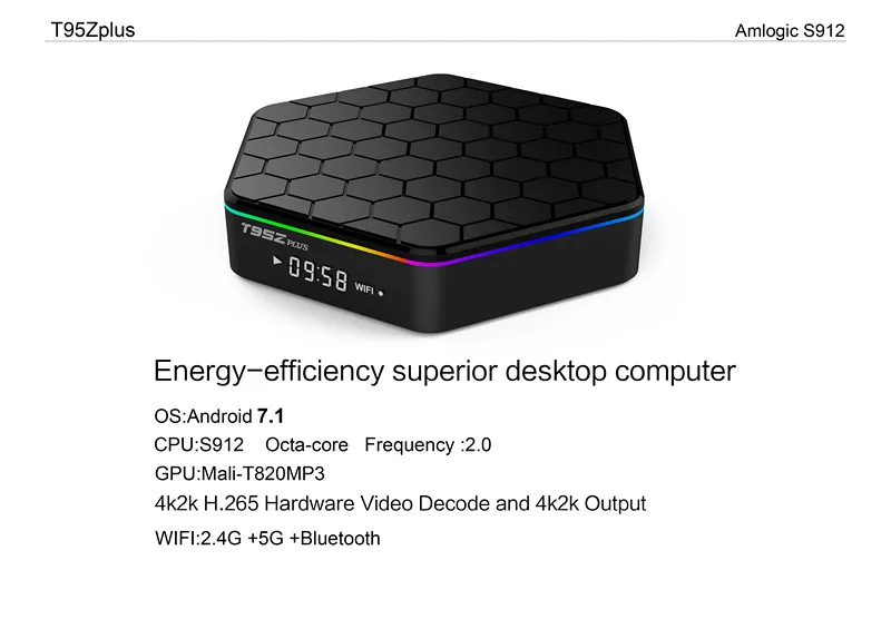 Amlogic S912 Octa Ядро смарт ТВ коробка T95Z плюс 3 Гб оперативной памяти, 32 Гб встроенной памяти, Android 7,1 светодиодный Дисплей BT4.0 1000M Lan 5G двойной WI-FI 4K 3D Декодер каналов кабельного телевидения