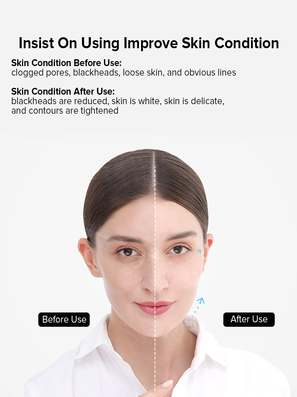 Состояние кожи после использования: угрей уменьшается, кожа белая, кожа нежная, и контуры затягиваются