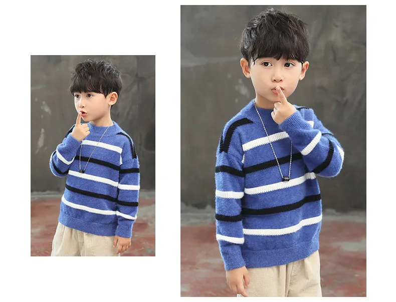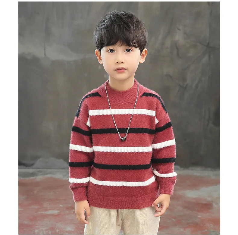 1 шерстяной свитер в полоску; топы для мальчиков-подростков 2 Мода 2019 г.; зимние пуловеры для детей; одежда 3 Детские Бархатные Топы для мальчиков; одежда
