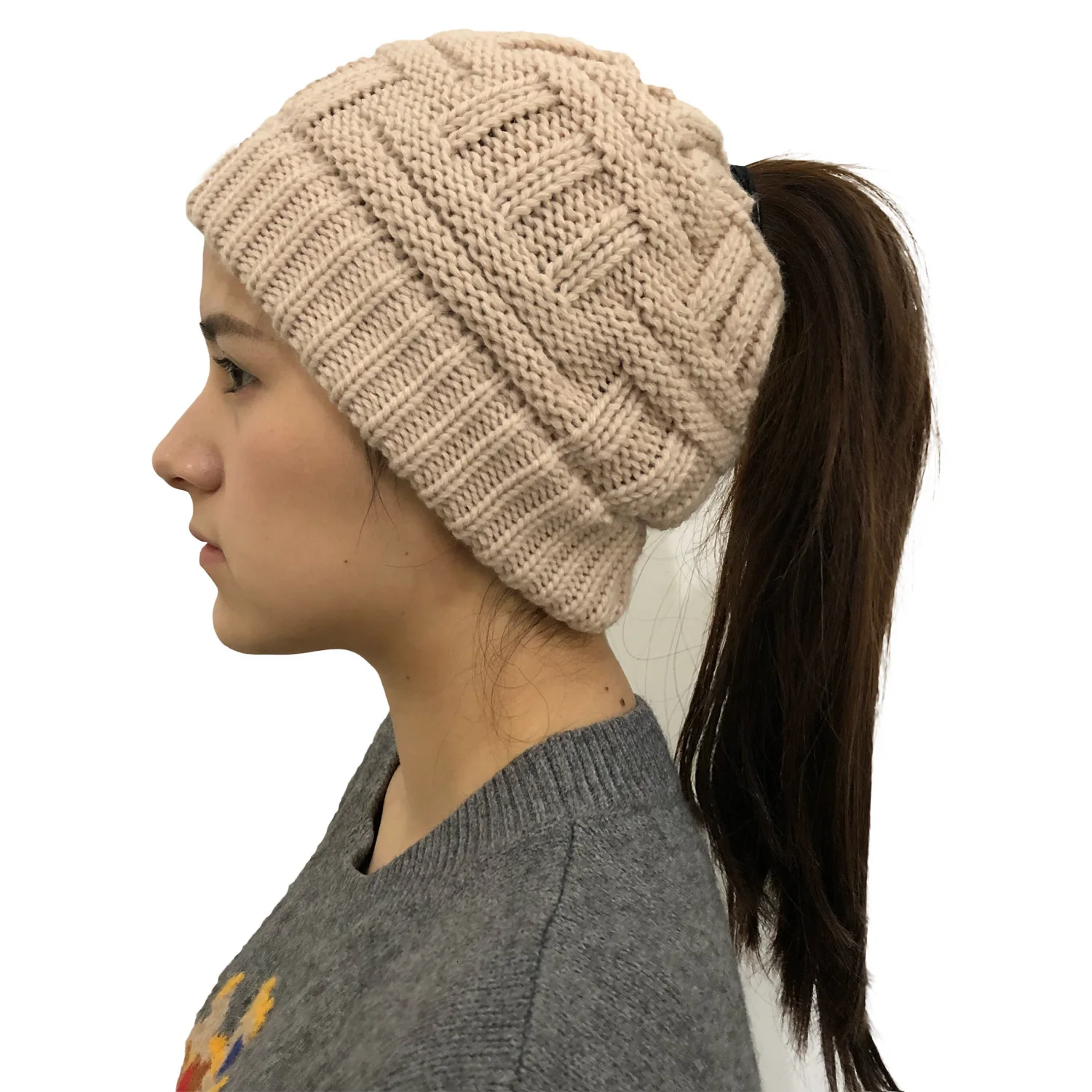 🌀GREAT MATERIAL: The knitted beanie is made of 100% soft acrylic. Exquisite seams, not easy to go offline, soft texture, flexible, very suitable for high ponytail.