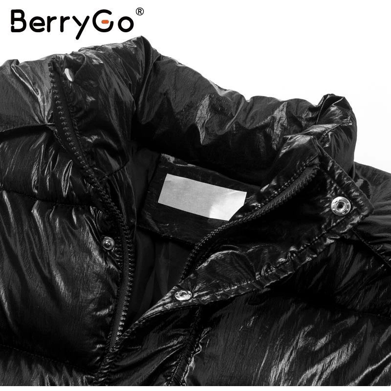 BerryGo Fashion oversize warm parkas women Zipper buttons female autumn winter padded coat Chic pockets outwear ladies jackets