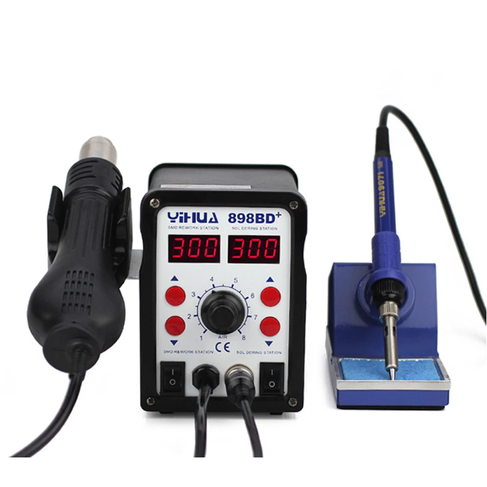YIHUA 2 в 1 цифровой дисплей горячего воздуха паяльная станция с термостатом SMD паяльник Тепловая пушка паяльная