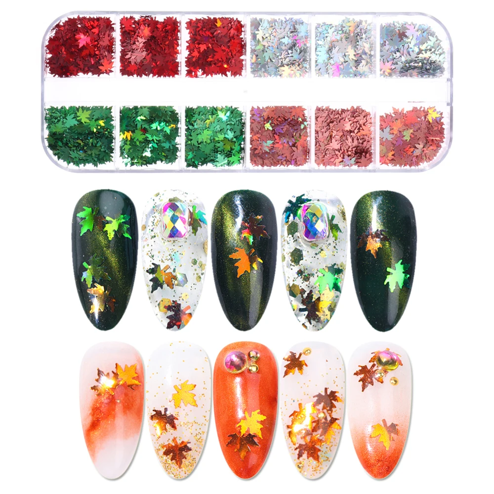 12 коробок многоцветный блеск для ногтей кленовый лист расшитый пайетками комплект блестящие хлопья для гель-лака зимний стикер инструменты для маникюра