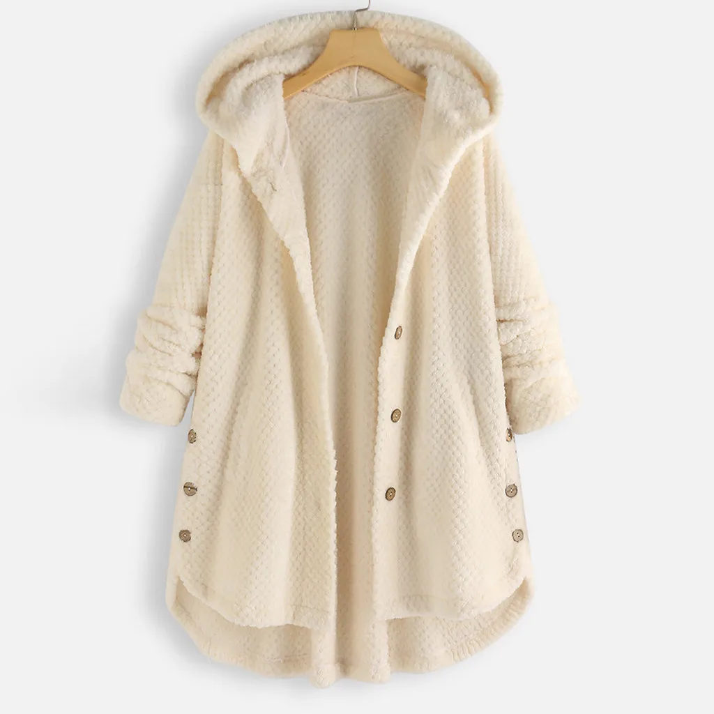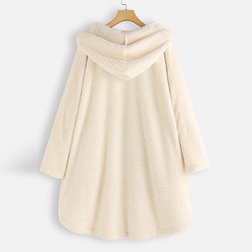 Женское флисовое пальто с капюшоном с длинным рукавом и карманами размера плюсИнформация о продукте