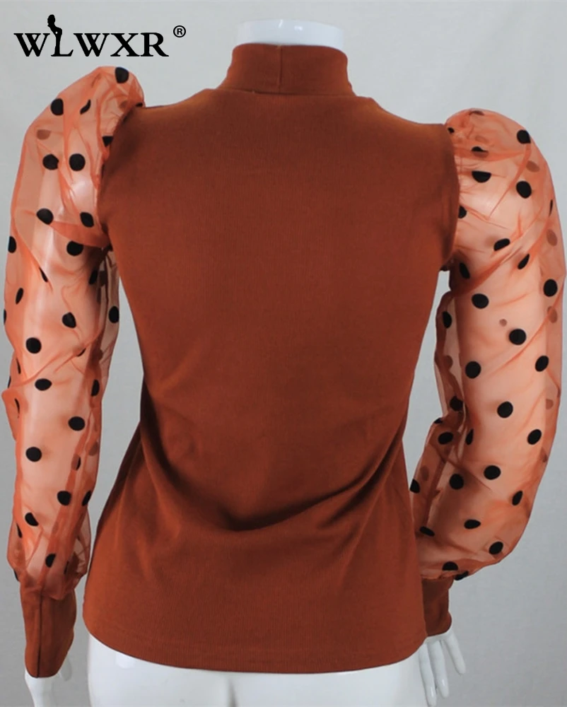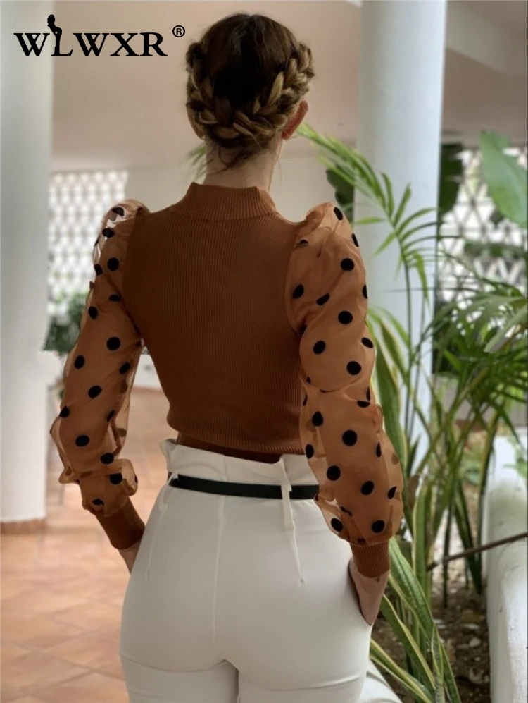 WLWXR трикотажный свитер в рубчик, женская рубашка, сетчатый рукав-фонарик, сексуальный облегающий свитер, пуловер, женские топы, Осень-зима, женские джемперы