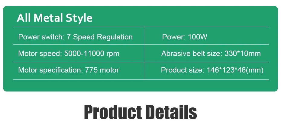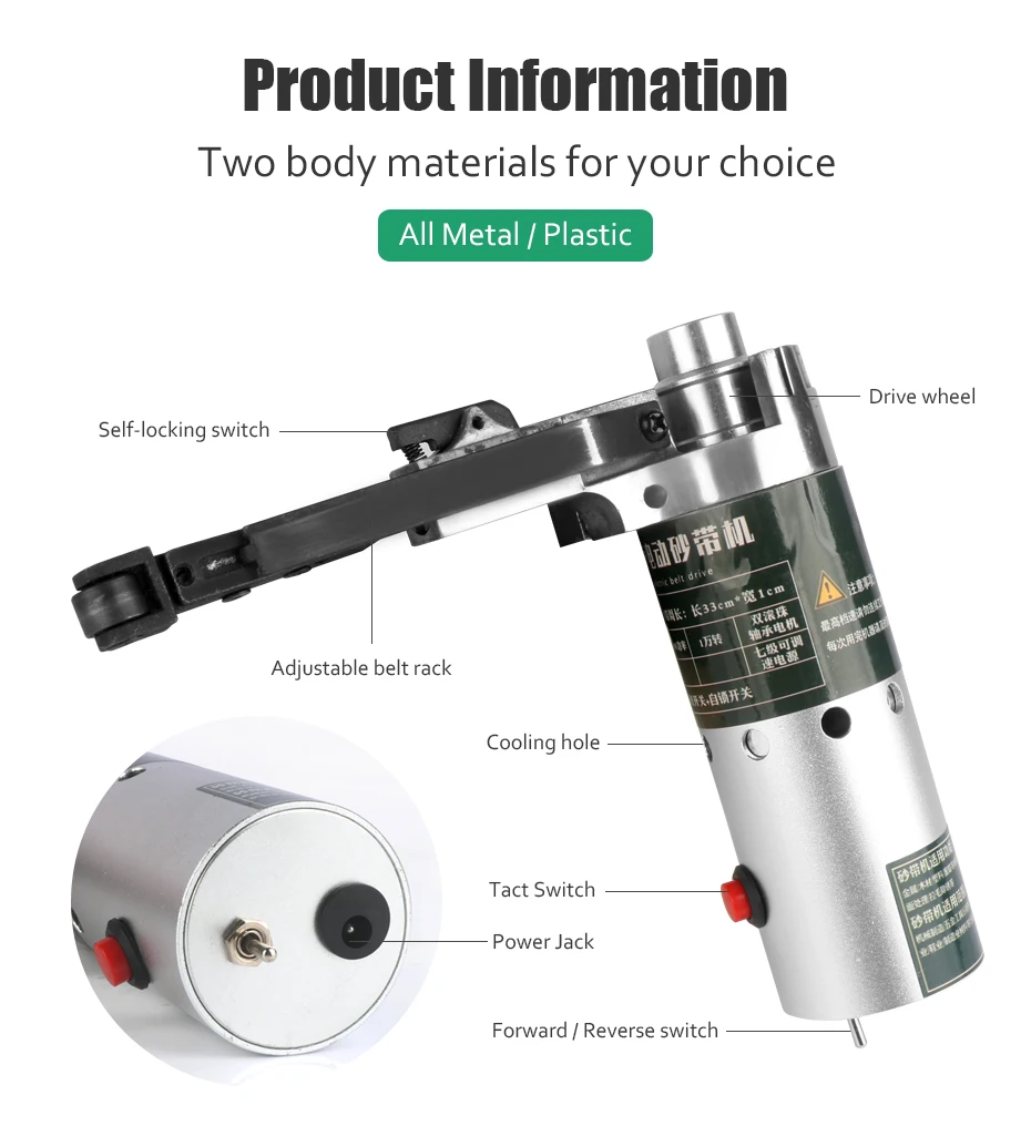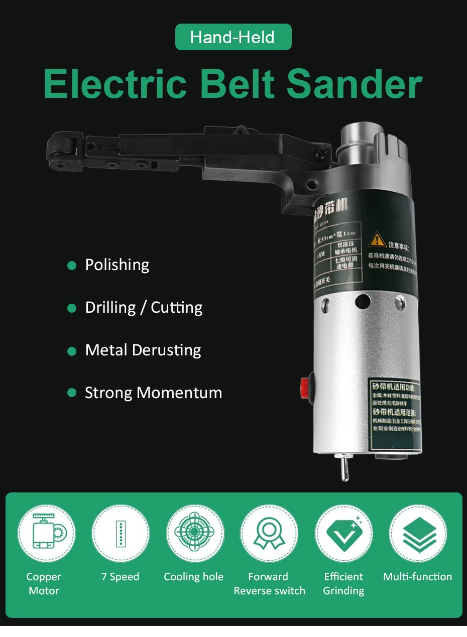 Сравните с традиционным ленточным шлифовальным станком, этот мини-многофункциональный ручной Электрический ленточный шлифовальный станок прост в эксплуатации и портативен для переноски. Особенности: Компактный дизайн и небольшой размер, портативный для переноски. Многофункциональный ручной электрический ленточный шлифовальный станок для шлифования, полировки и сверления отверстий на металле, дереве, камне и т. д. Мощность ed высокоскоростной 775 мотор, который имеет отличную производительность, сильную мощность и длительный срок службы. Электрический ленточный шлифовальный станок может быть передним и обратным вращением, а также имеет функцию самоблокировки, очень легко управлять. Сравните с традиционным ленточным шлифовальным станком, этот шлифовальный ленточный мини-станок прост в эксплуатации. Набор из 105 шт. (16 типов) Набор для полировки, для самостоятельной полировки гравировки, резки, полировки (дерево, металл, полировка форм). Оснащен прочной инструмент чехол для хранения продукции и все аксессуары. Широко применяется для полировки древесины, очистки ржавчины, шлифования сварочных точек, пилинга деревянных бусин, сверления отверстий керамической плитки, пробивки металлических отверстий и т. д. Характеристики: Тип вилки: ЕС/США (опционально) Материал: Поликарбонат + металл Мотор: 775 Питание: 24V, 4.5A Выходная мощность: 100 Вт Скорость вращения двигателя: 10000/мин. Размер изделия: 17*5*5 см/6,69*1,97 * 1.97in Вес изделия: 1340 г/47,27 унций Вес посылка: 1480 г/52,20 унций Размер посылка: 29*19*16 см/11,42*7,48*6,30 дюймов