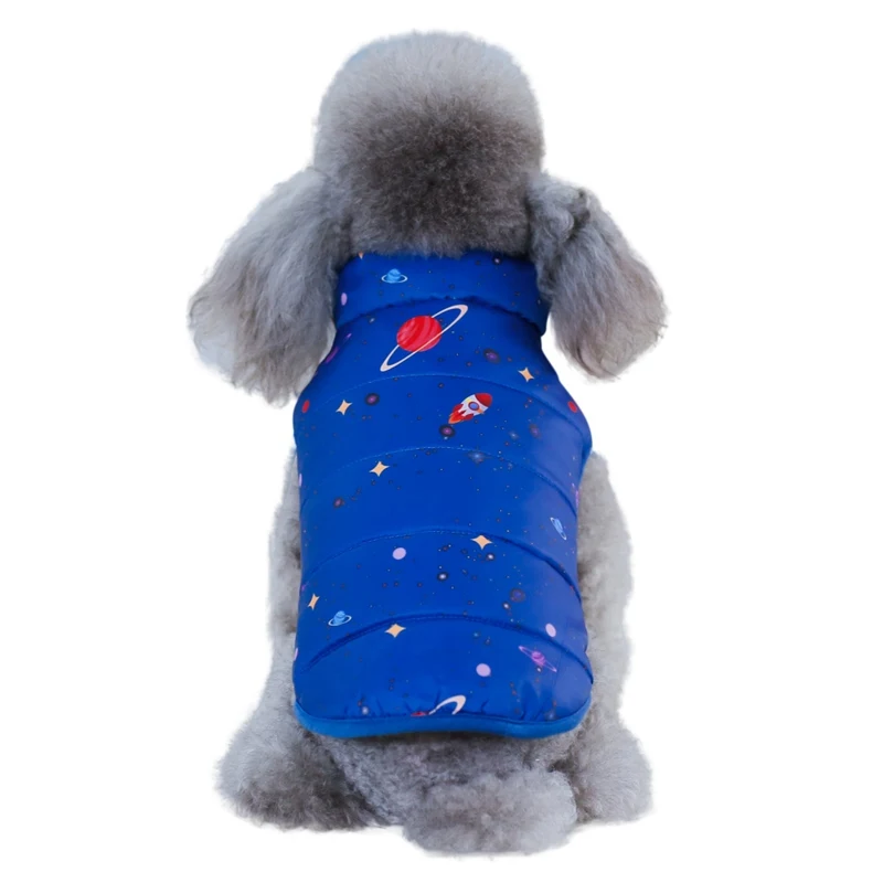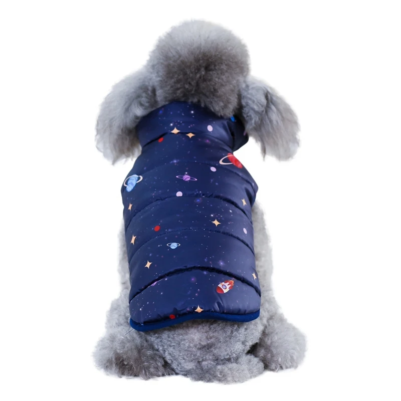 2. Дизайн: стоячий воротник и уникальные космические Ландшафтные узоры идеально подходят для украшения собак и подходят для всех случаев. Собаки могут стать более привлекательными после того, как на пальто, и вы можете показать свой различный вкус моды. Есть два цвета, которые можно выбрать, чтобы все были красивы.