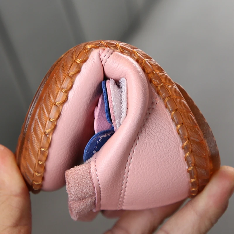 1. Подошва этой обуви изготовлена из сухожилия и обладает хорошей противоскользящей способностью. Верх выполнен из искусственной кожи. Он удобный и приятный для кожи. Ребенку удобно носить, и мама более уверенна.