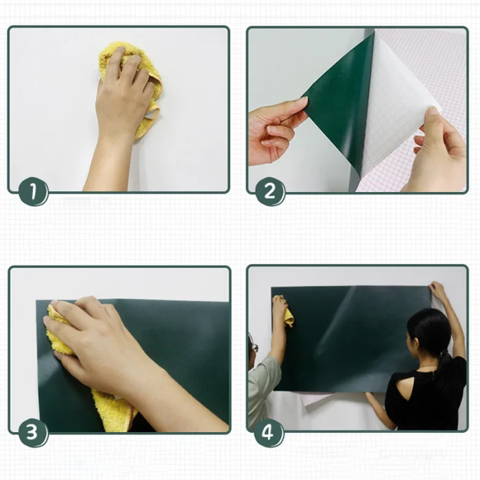 1. Когда вы получите стикер для белой доски, положите его на несколько часов и приклейте его к стеклу, металлу, стене, двери или любой другой поверхности (поверхность должна быть очищена, прежде чем размещать продукт поверх).