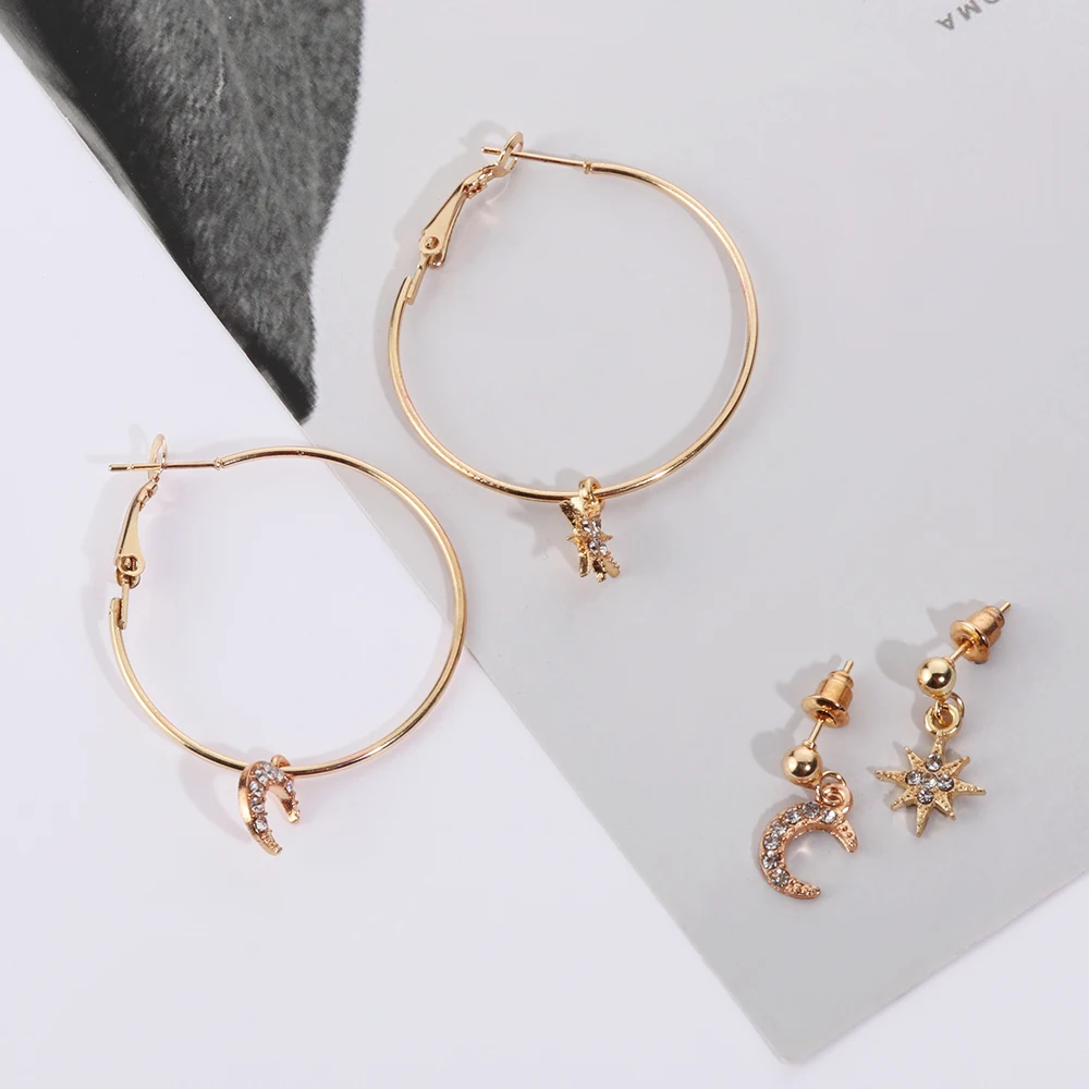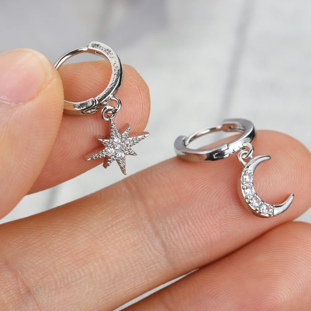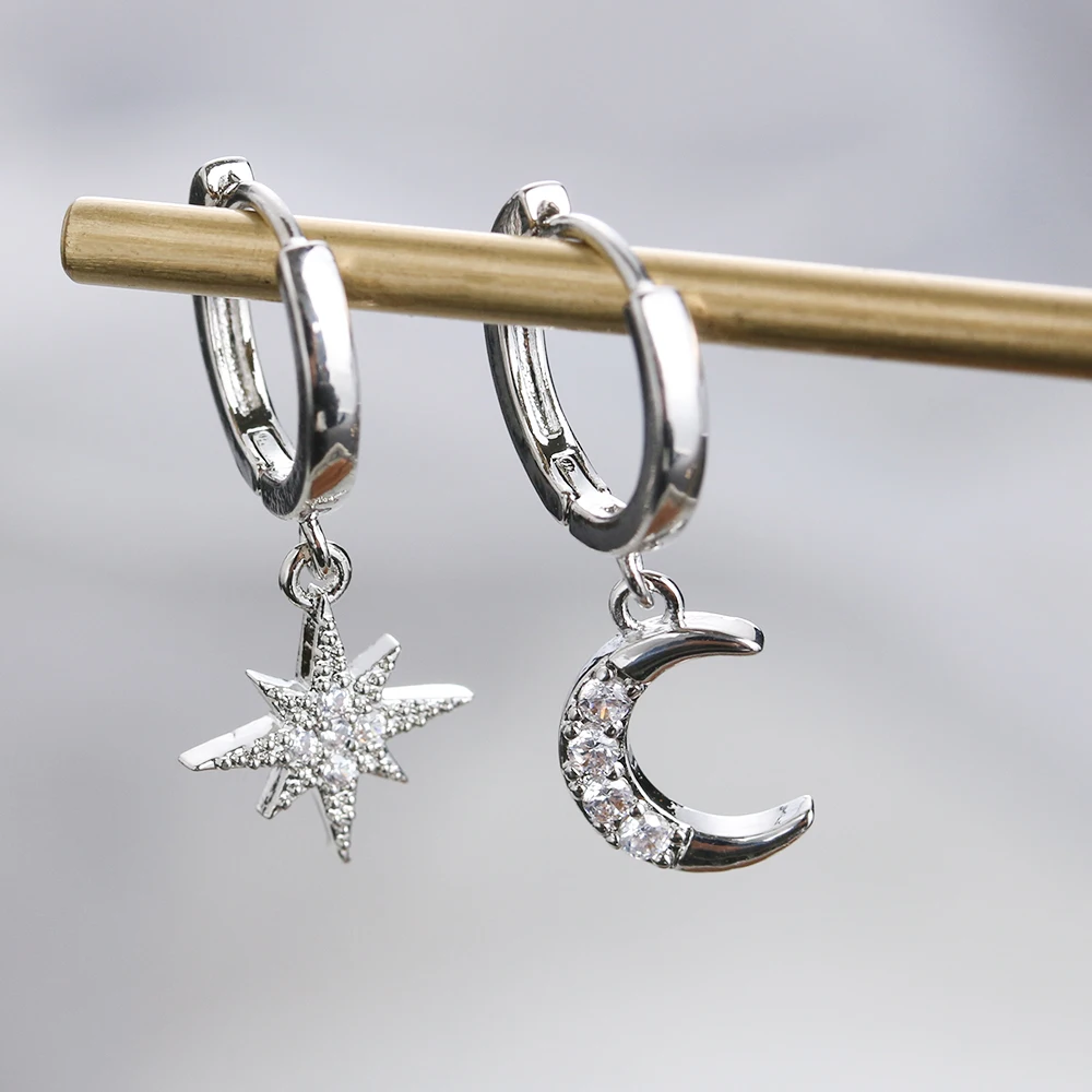 Материал: металл Тип Металлов: цинковый сплав Пол: женщин Стиль: Модный Форма: звезда/луна Цвет: золотой, серебряный Длина: 28 мм Упаковка включает в себя: 1 пара серег