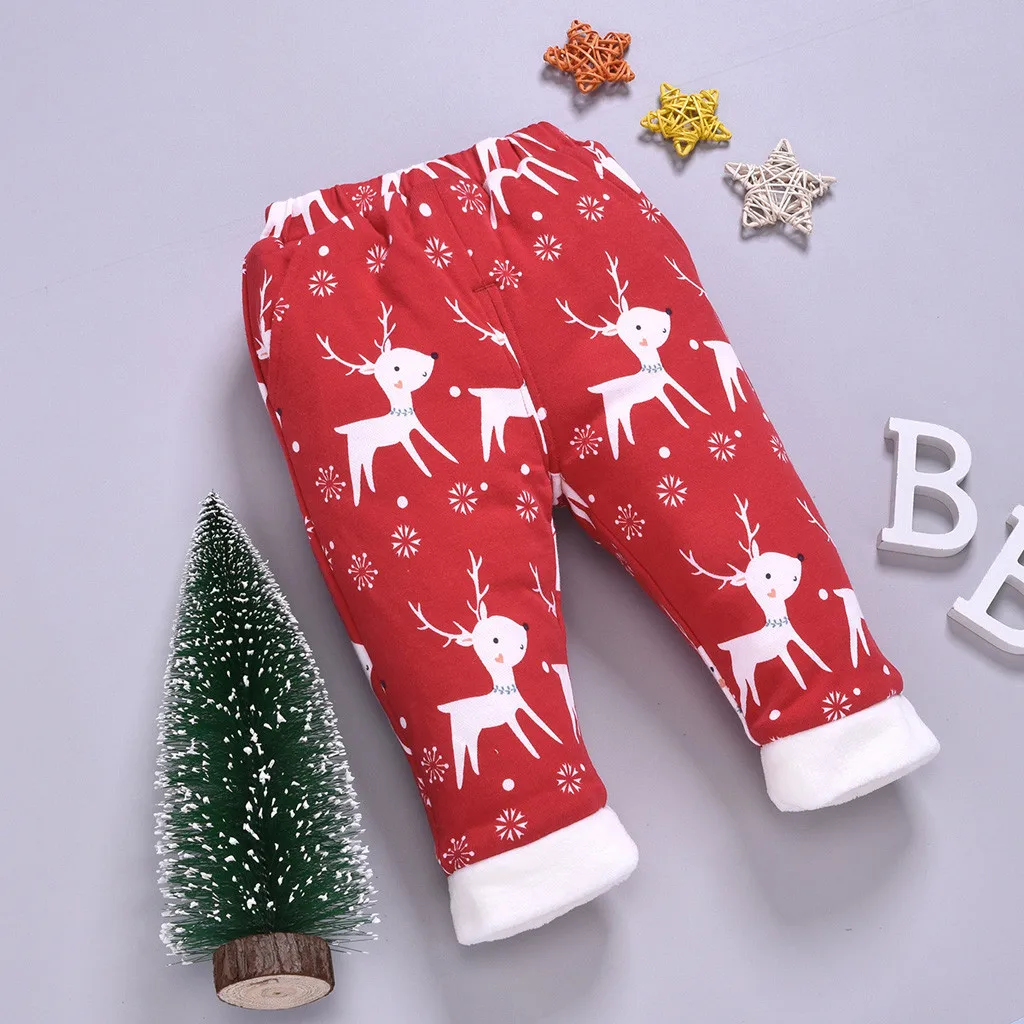 Детские повседневные плотные рождественские свободные штаны с оленем для маленьких мальчиков и девочек, брюки