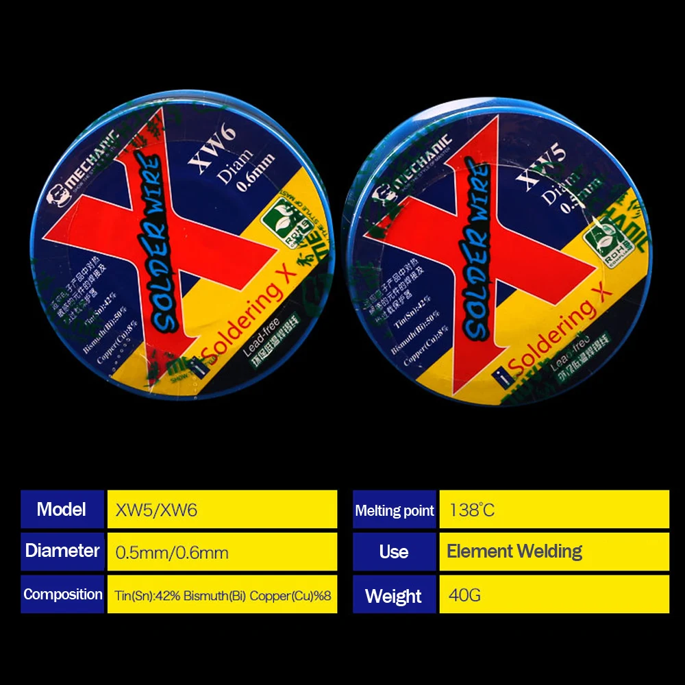 Механик 0,5 мм/0,6 мм Бессвинцовая припойная проволока низкая температура сварочной проволоки Sn42Bi50Cu8 для iPhone X/XS/XR/Xs MAX специальная Оловянная линия