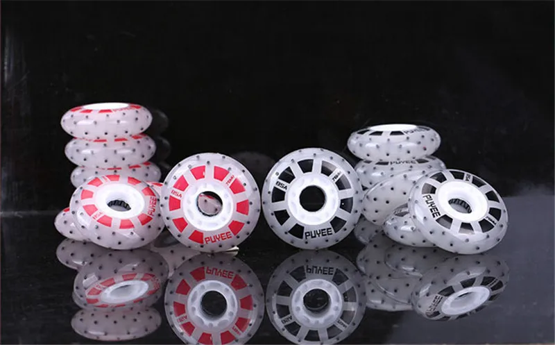 1. Красный зеленый синий белый светодиодный светильник с огненным камнем 2. 72 мм 76 мм 80 мм 3. Твердость 85A для торможения 4. Прохладно в темноте и ночью 5. Известный бренд флэш скейт колеса с отличным качеством