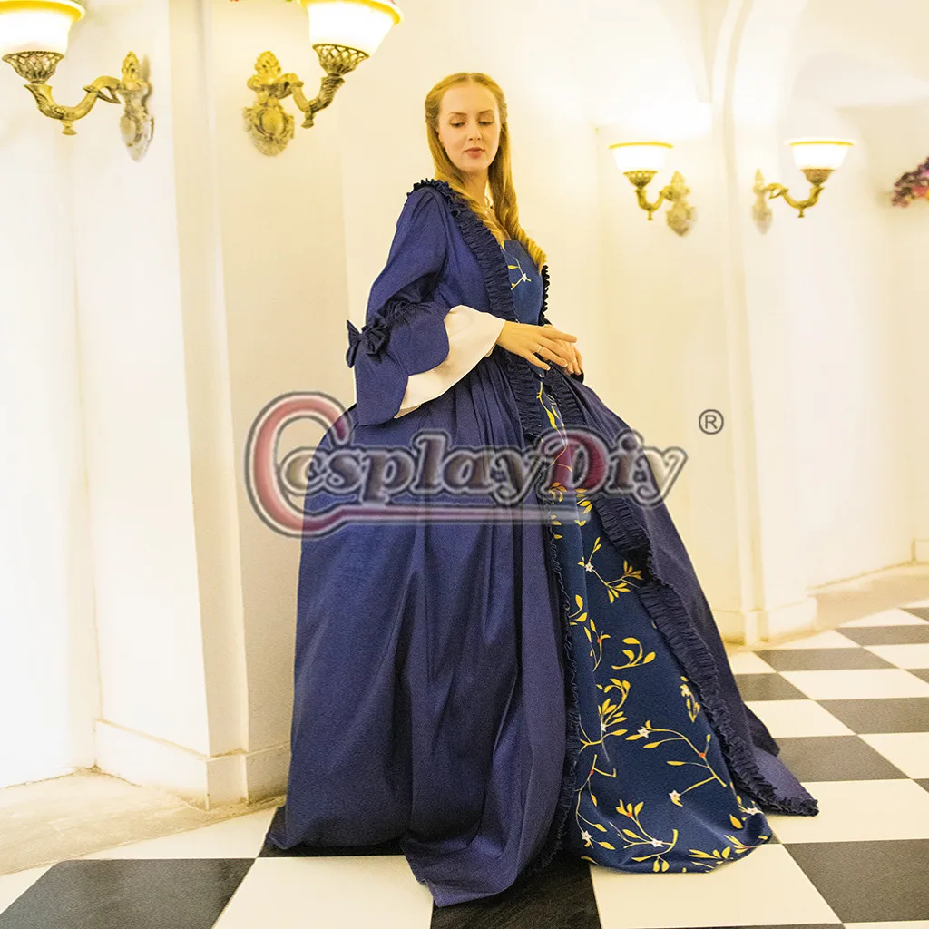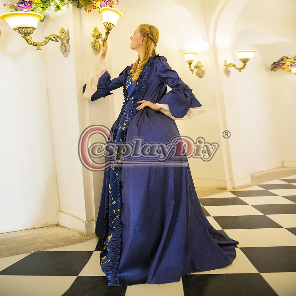 Cosplaydiy 18th Century Court Gowns Marie Antoinette Dark Blue Rococo Costume Dress Colonial Georgian Queen Court Gowns L320