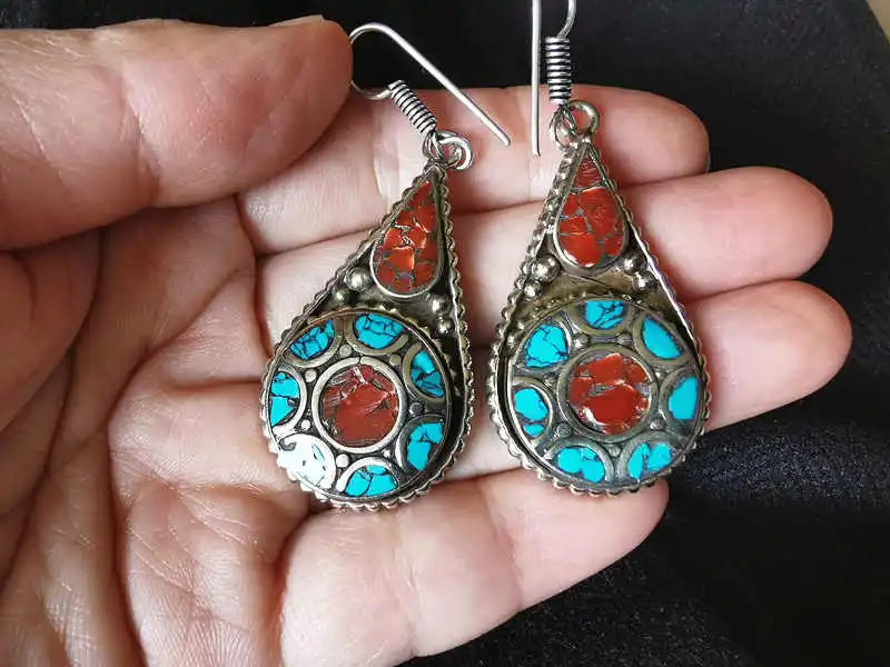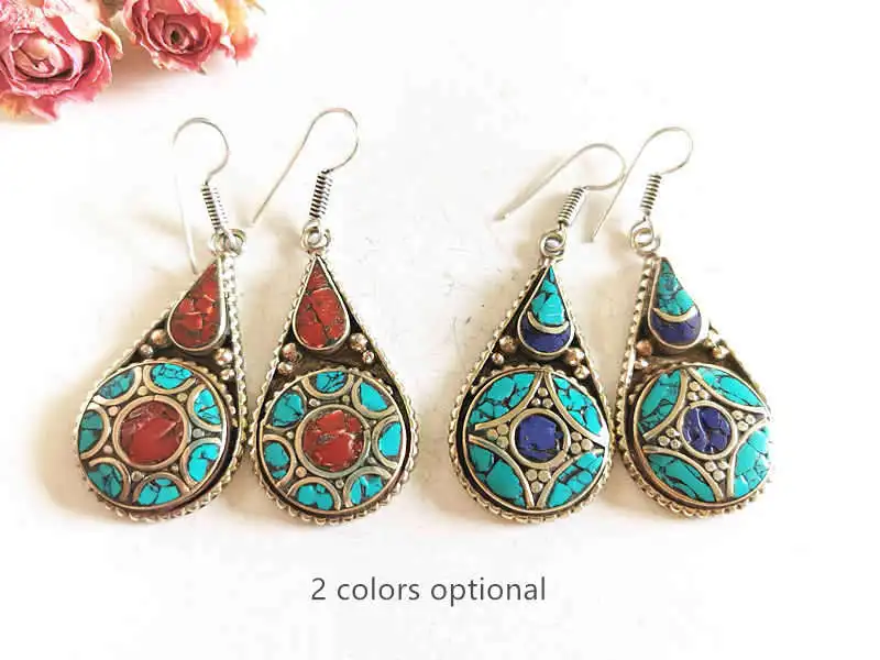 Милые Винтажные серьги для леди Медная Инкрустация красочные бусины капли воды серьги Из Непала! * Изготовлен из меди, инкрустация разноцветными бусинами * Милые серьги в форме цветка. * Милый размер.