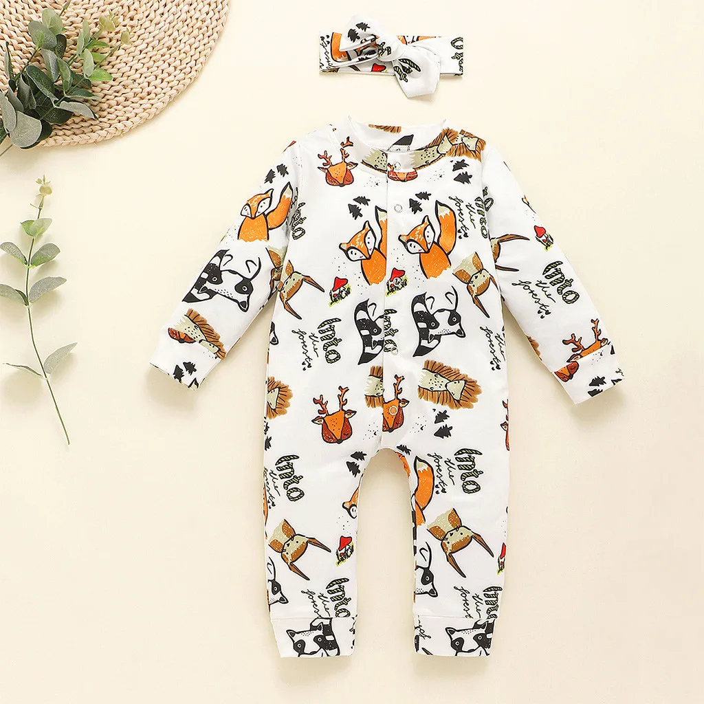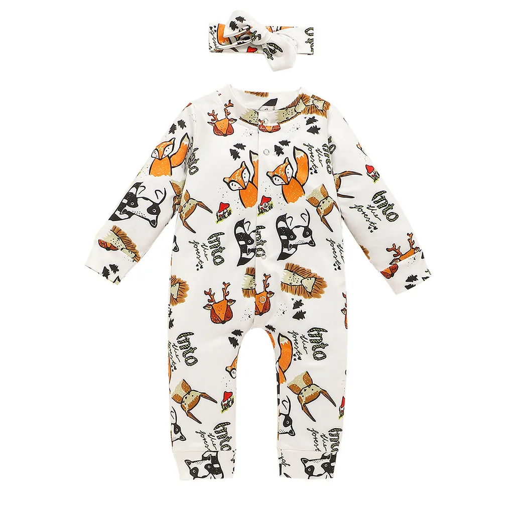 Детский комбинезон с рисунком для маленьких девочек, повязка на голову, Осенний комбинезон