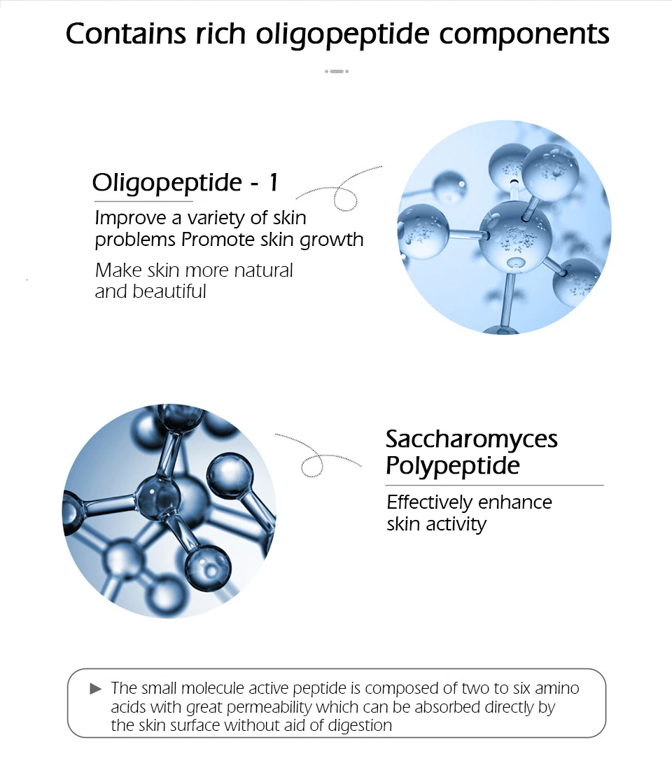Небольшая молекула активный пептид состоит из двух-шести аминокислот с большой проницаемостью, которая может быть поглощена непосредственно поверхностью кожи без помощи пищеварения