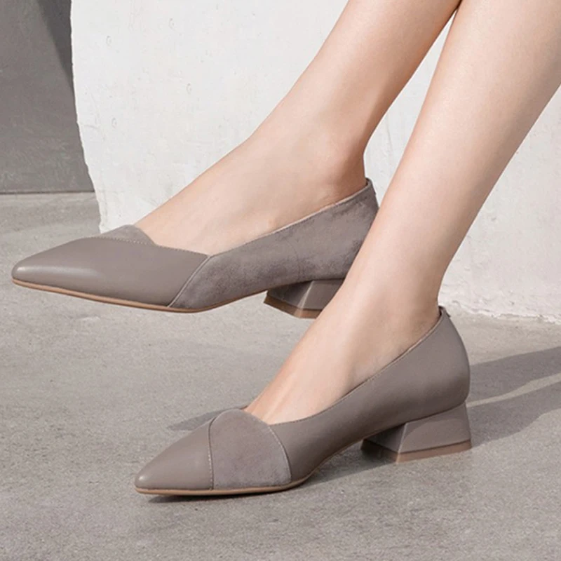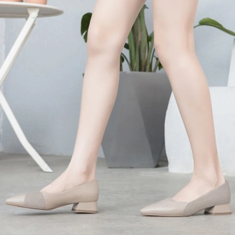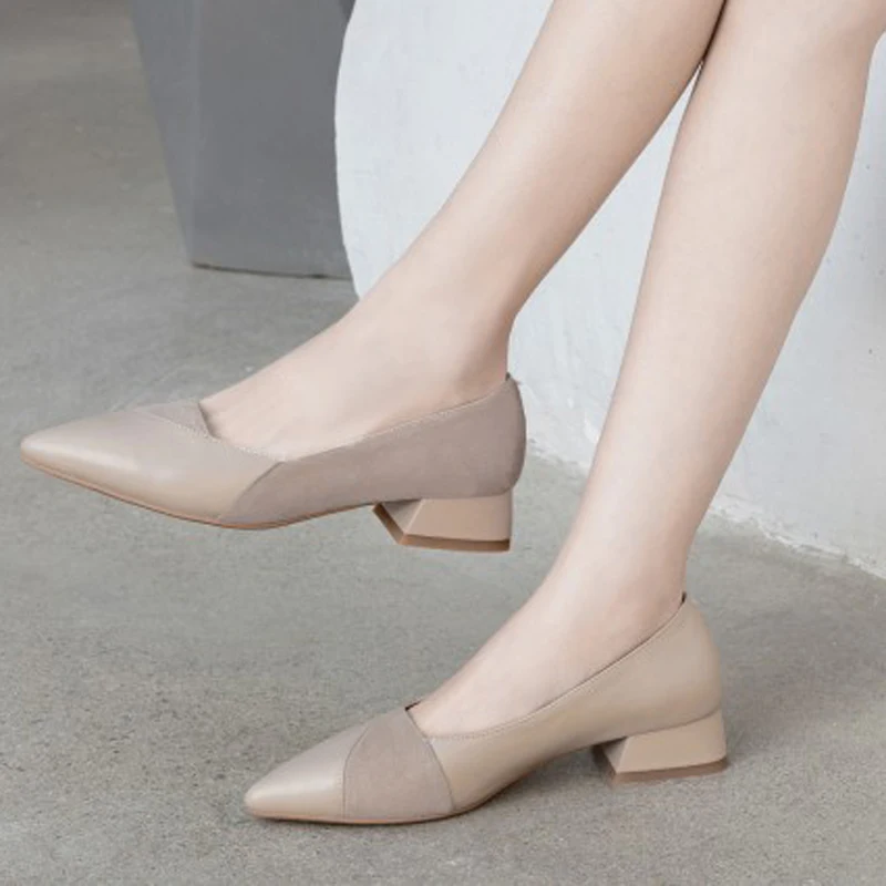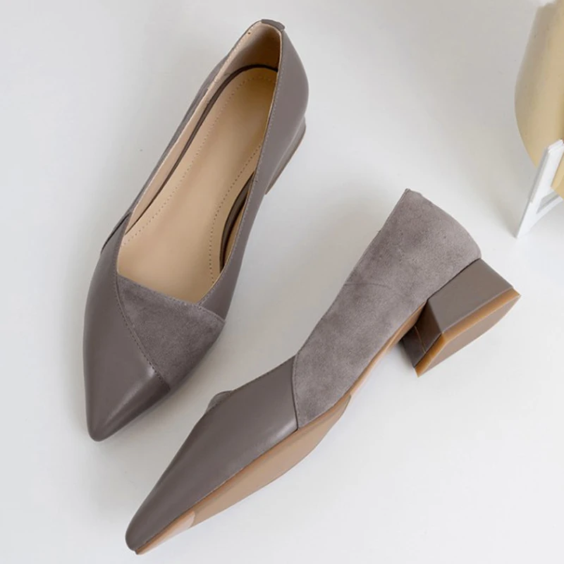Женские туфли на низком каблуке из натуральной коровьей кожи; Новинка; сезон весна; элегантные женские туфли на каблуке; женские туфли-лодочки с острым носком; Цвет хаки, черный, серый; G004