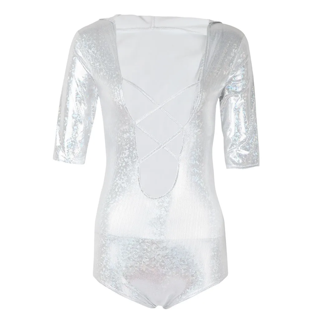 Для женщин комбинезон с капюшоном, утягивающий комбинезон Блестящие купальники
